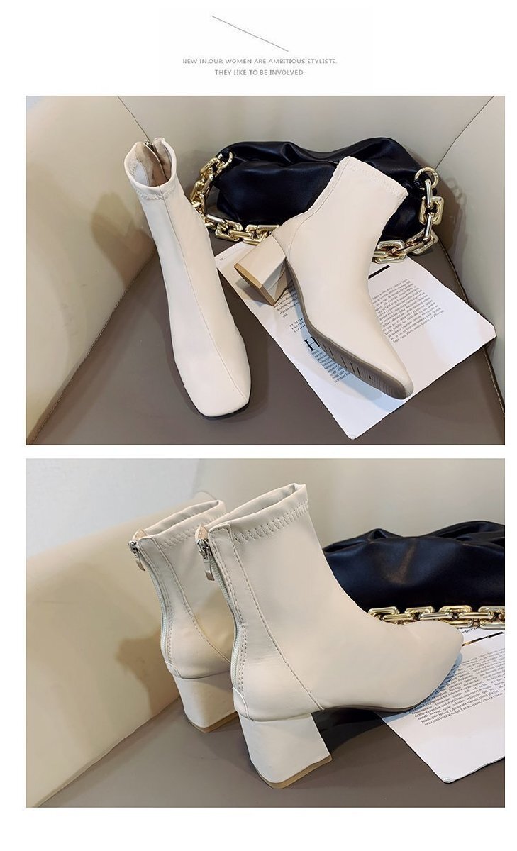 ショートブーツ チャンキーヒール 厚底 黒 ブラック 太ヒール 6cmヒール 22.5cm(35) 黒