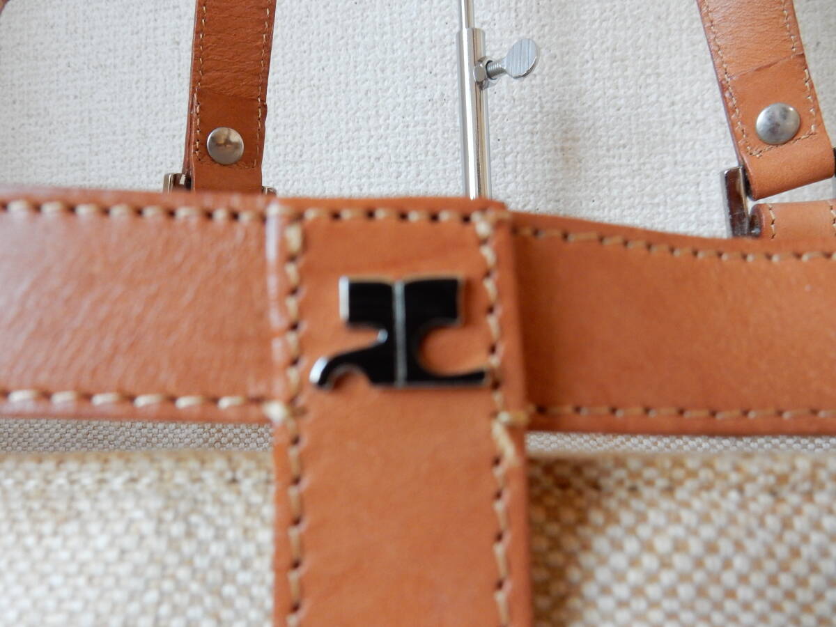 courreges(クレージュ)☆A4対応☆肩掛けOK☆トートバッグ ベージュ×ライトブラウン(金具/真鍮色)