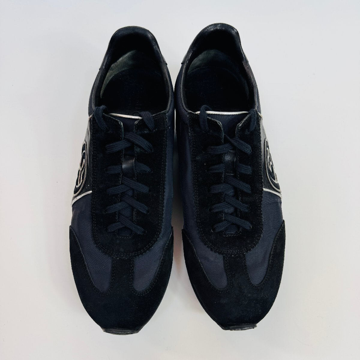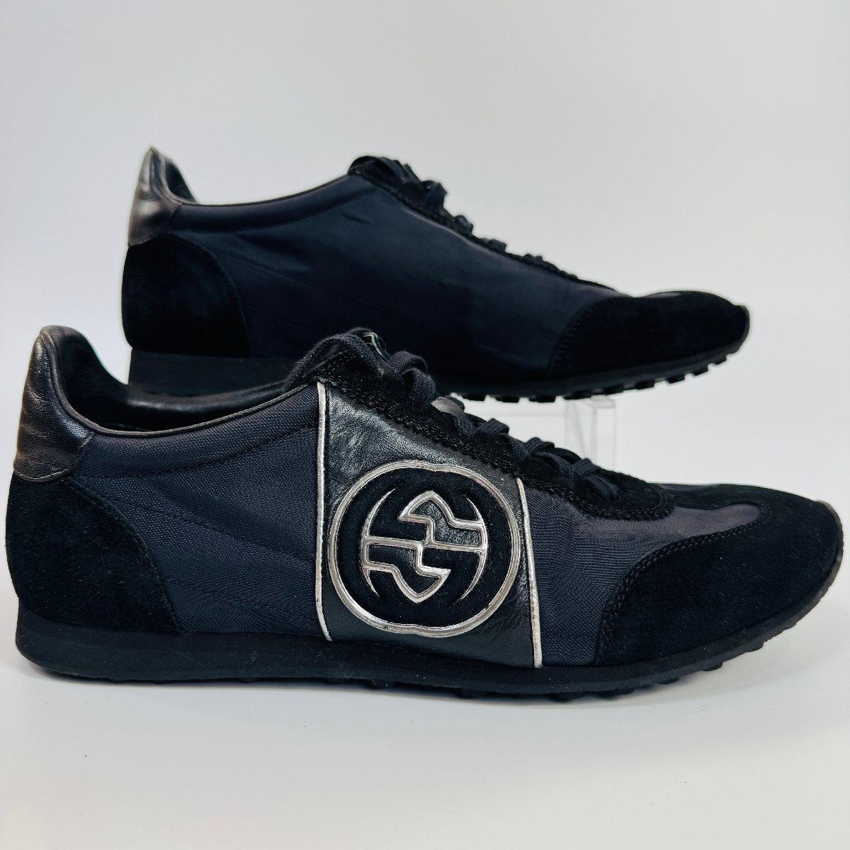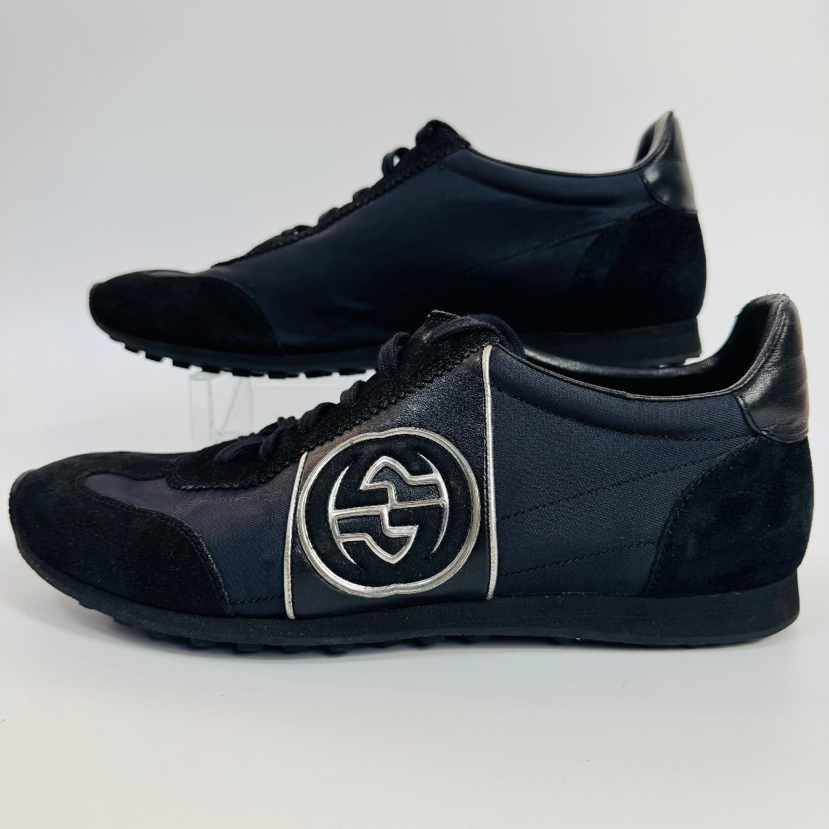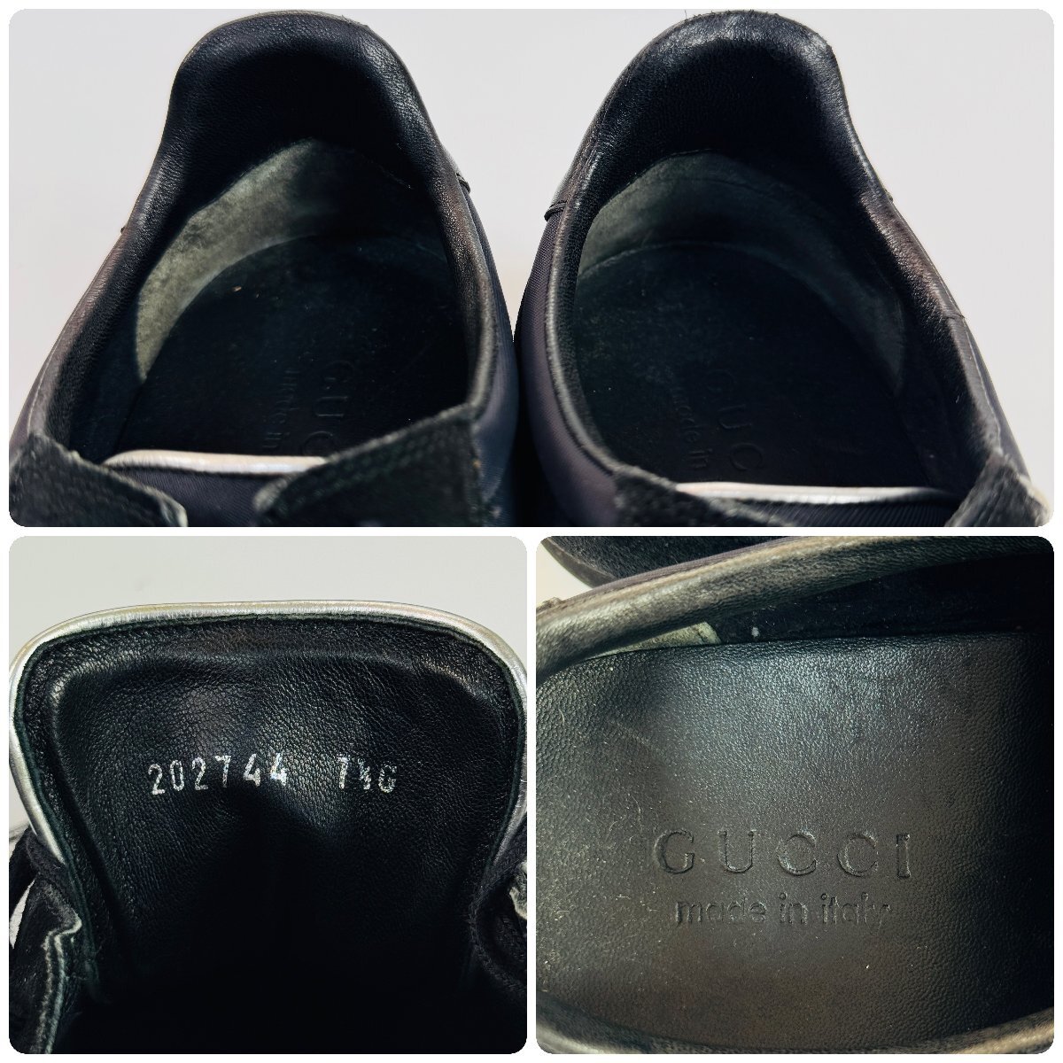 美品/7.5サイズ 25~25.5cm相当★グッチ GUCCI インターロッキング ロゴワッペン レザー切替 スニーカー シューズ 靴 GG総柄 メンズ 黒