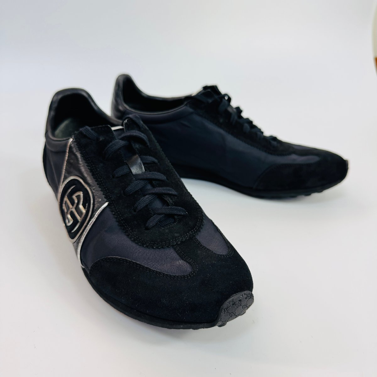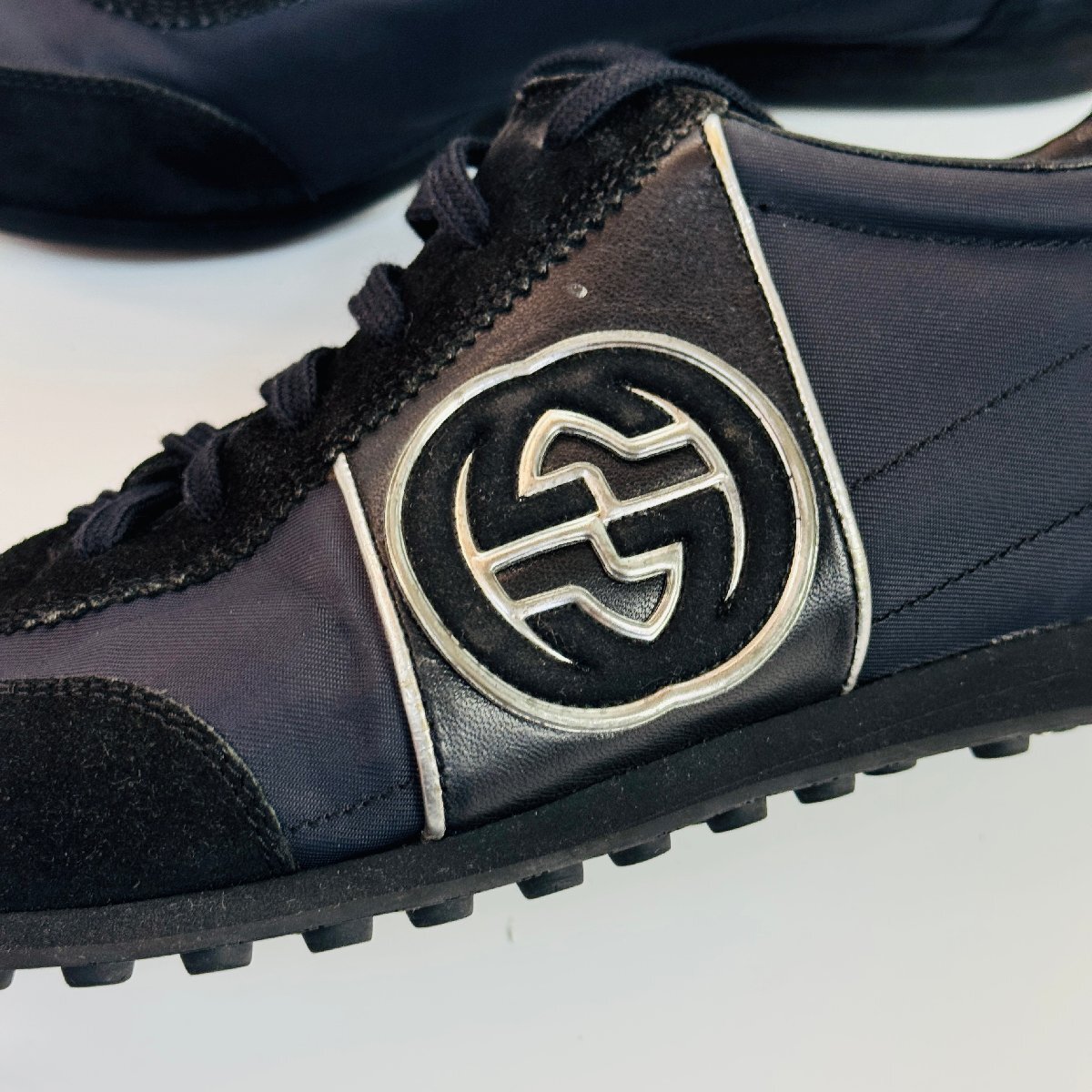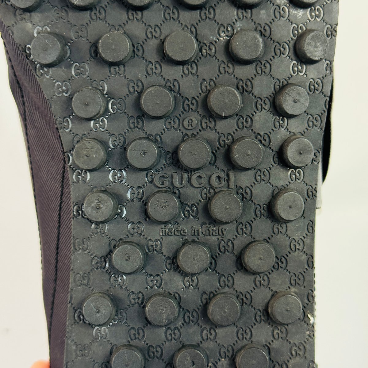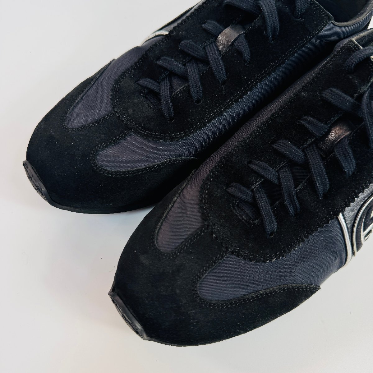 美品/7.5サイズ 25~25.5cm相当★グッチ GUCCI インターロッキング ロゴワッペン レザー切替 スニーカー シューズ 靴 GG総柄 メンズ 黒