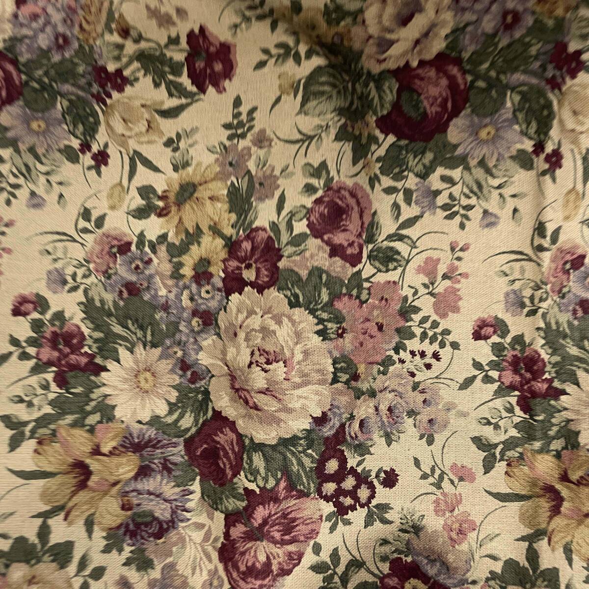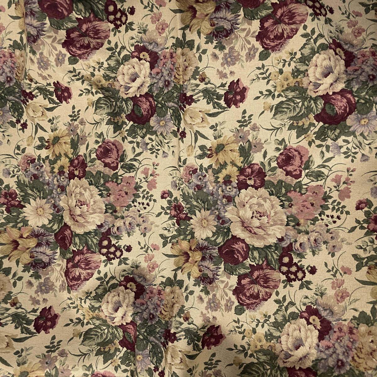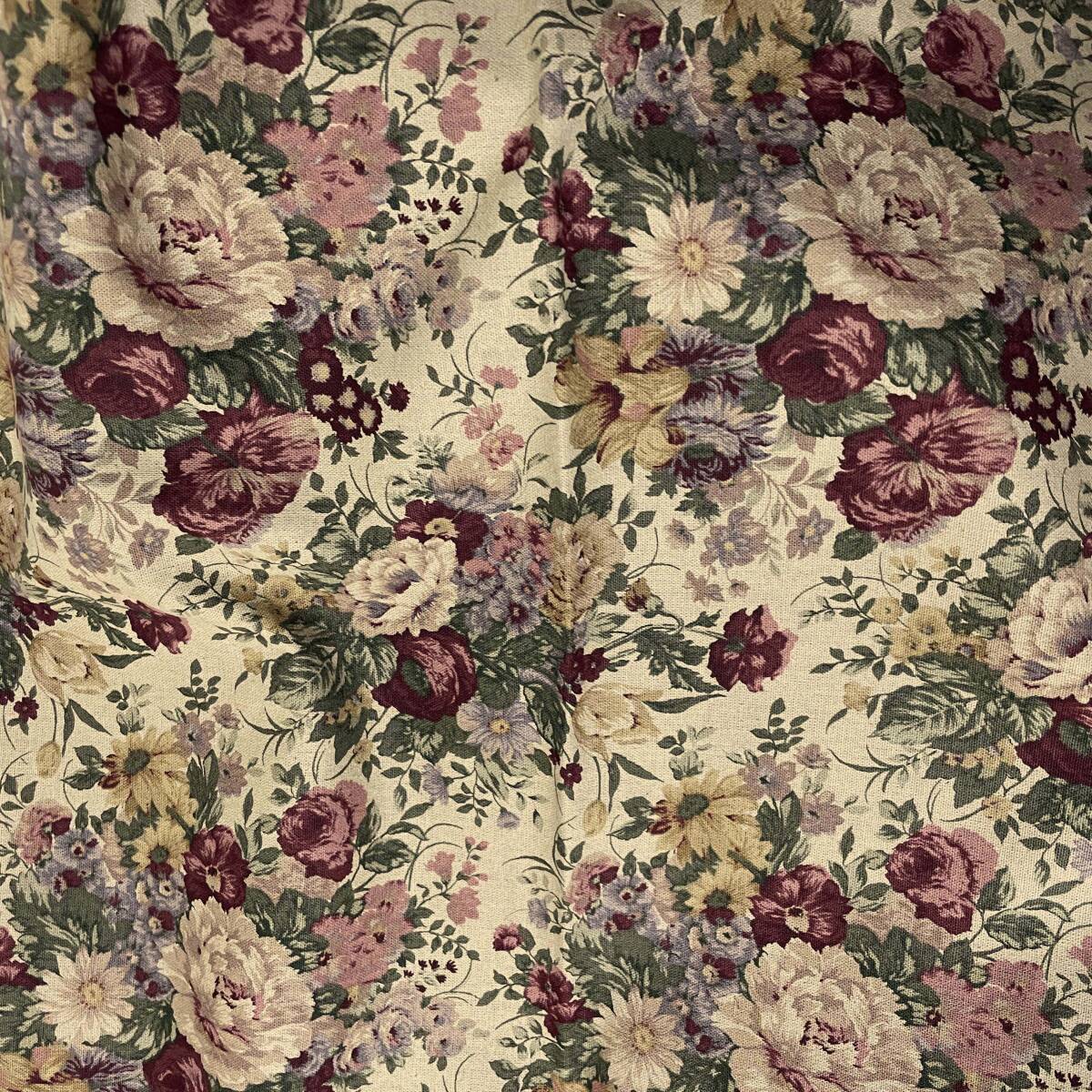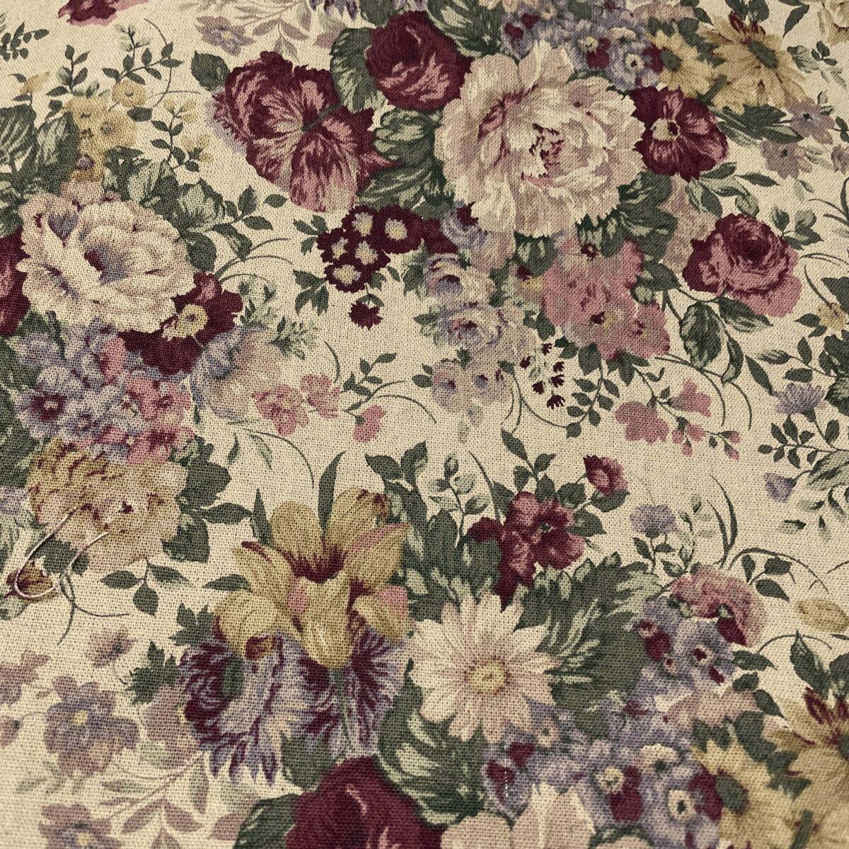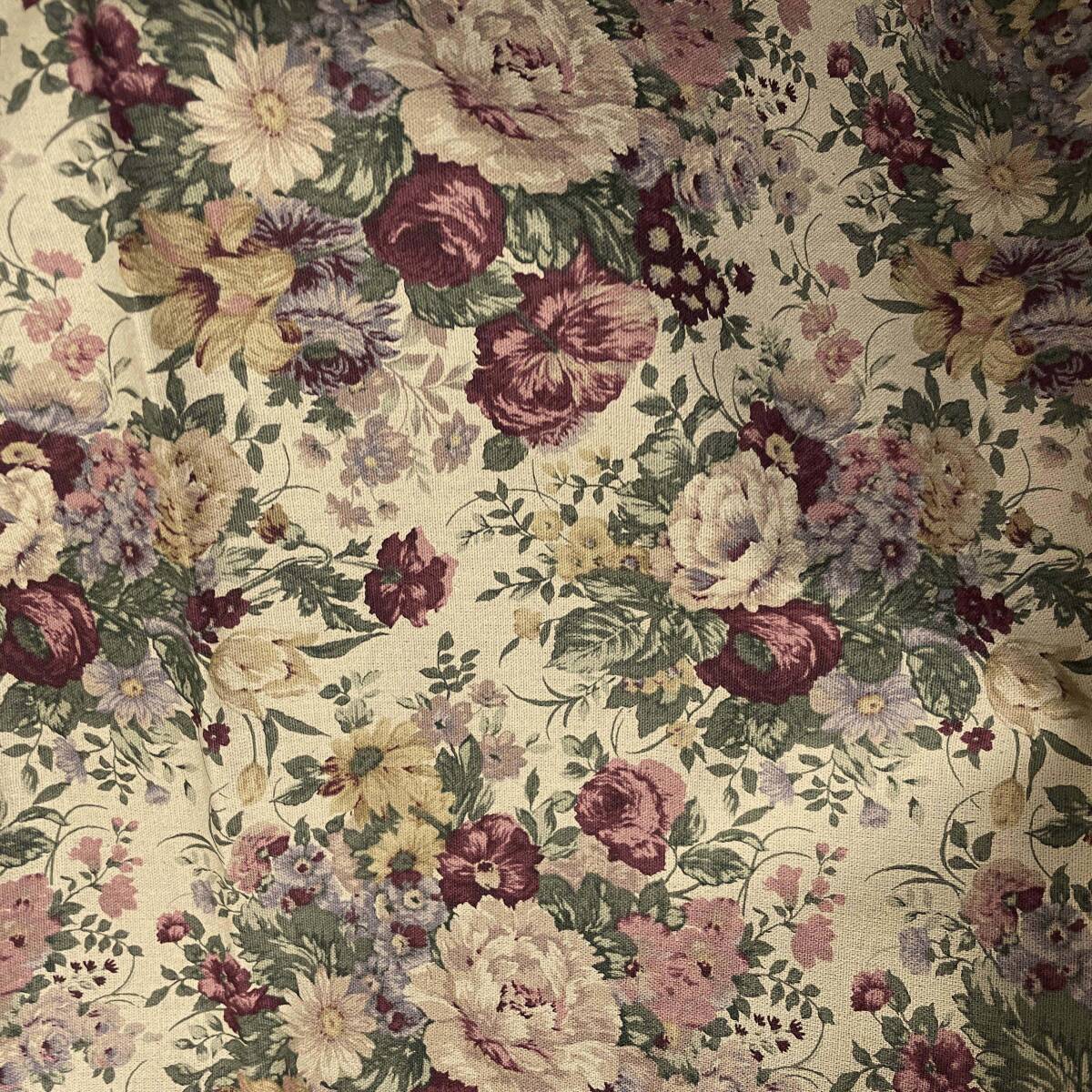 YUWA有輪セピア綿麻キャンバス50cコットンリネン生地はぎれ布ブーケばらローズ