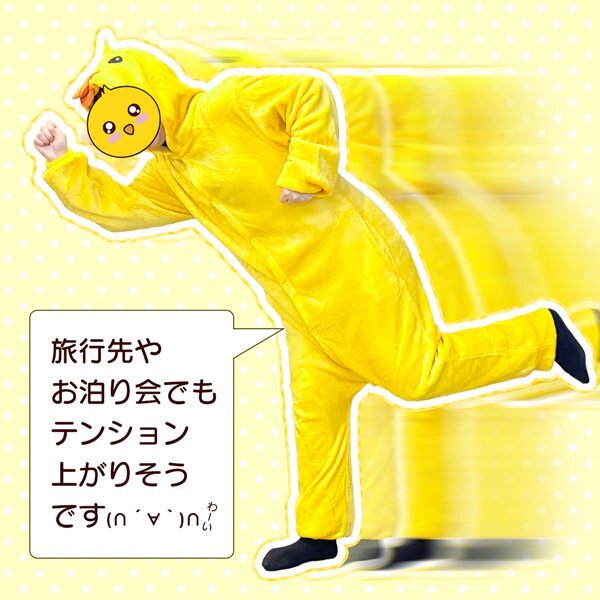 軽くて全身あったかいヒヨコの着ぐるみパジャマです。