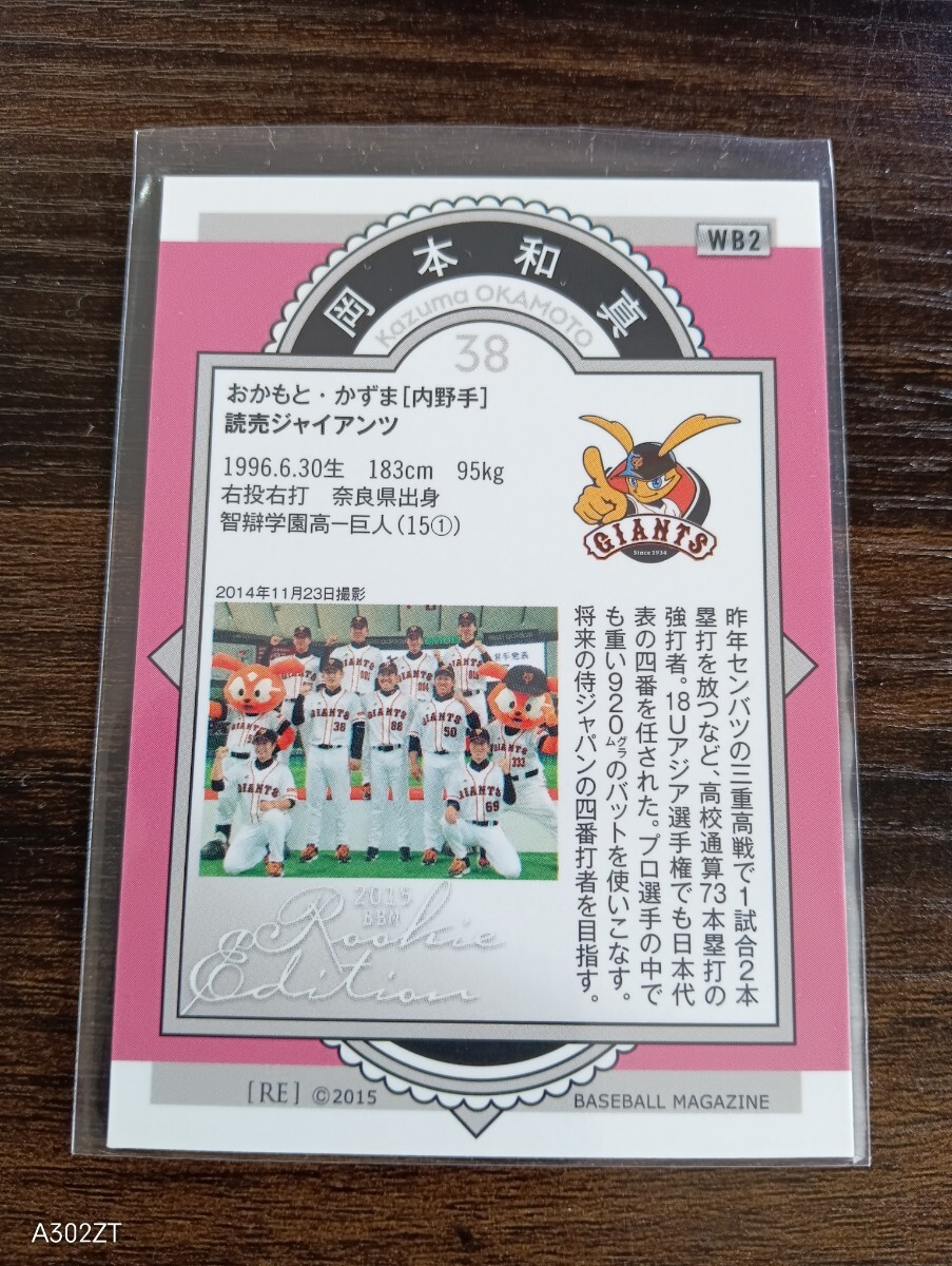 【週ベ付録プロモ版】15BBM RE 岡本和真 KAZUMA OKAMOTO(巨人)ルーキー RC ROOKIE です。週刊ベースボールの付録カードです。大切に保管しておりました。送料は、普通郵便で110円です。