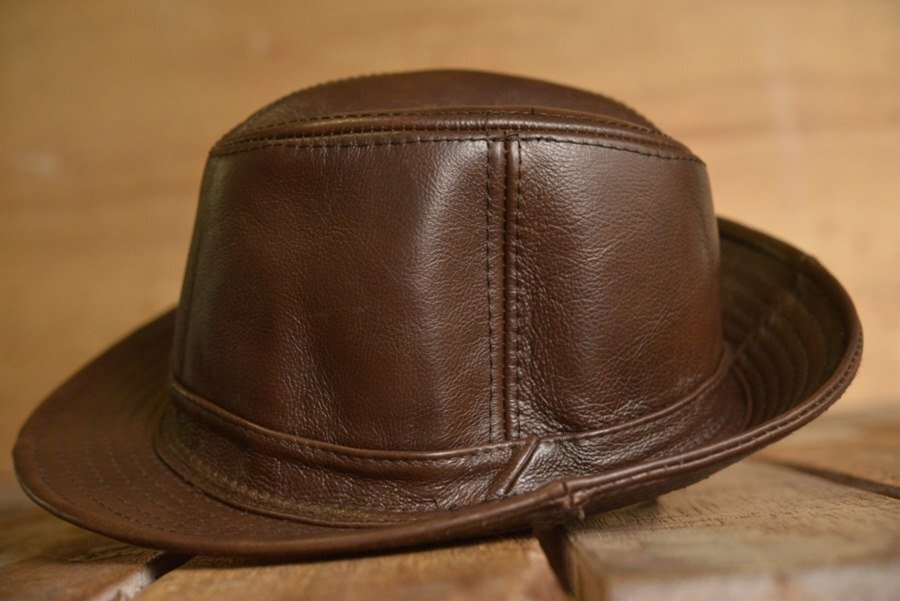 本革 レザー 中折れハット ハット 帽子 FEDORA HAT メンズ フェドラハット 7996231 ブラウン 普通サイズ 新品 1円 スタート