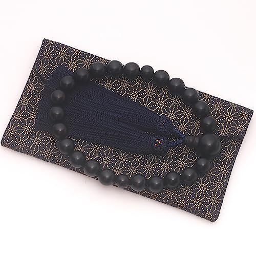 鉄紺 数珠 男性用 縞黒檀 念珠 葬式 葬儀 お通夜 略式 数珠袋付き 全ての宗派でお使い頂けます… (鉄紺)