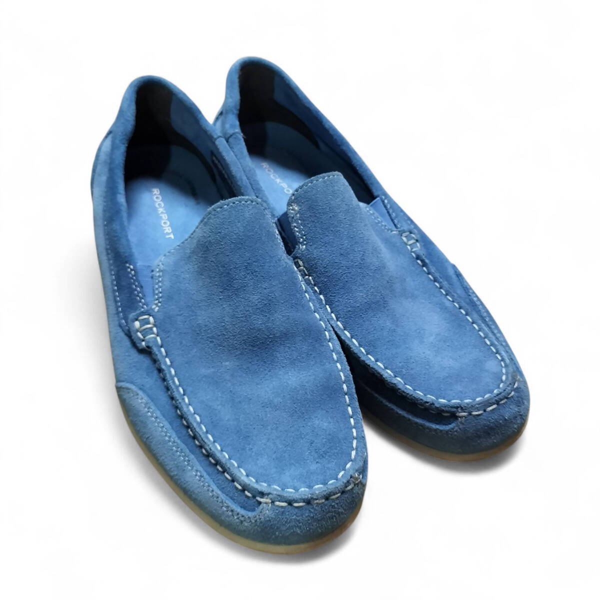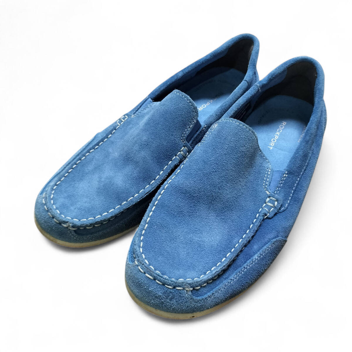 【美品】ROCKPORT ロックポート ローファー スリッポン スエード 青 ブラック 25.5㎝ メンズ 靴 シューズ