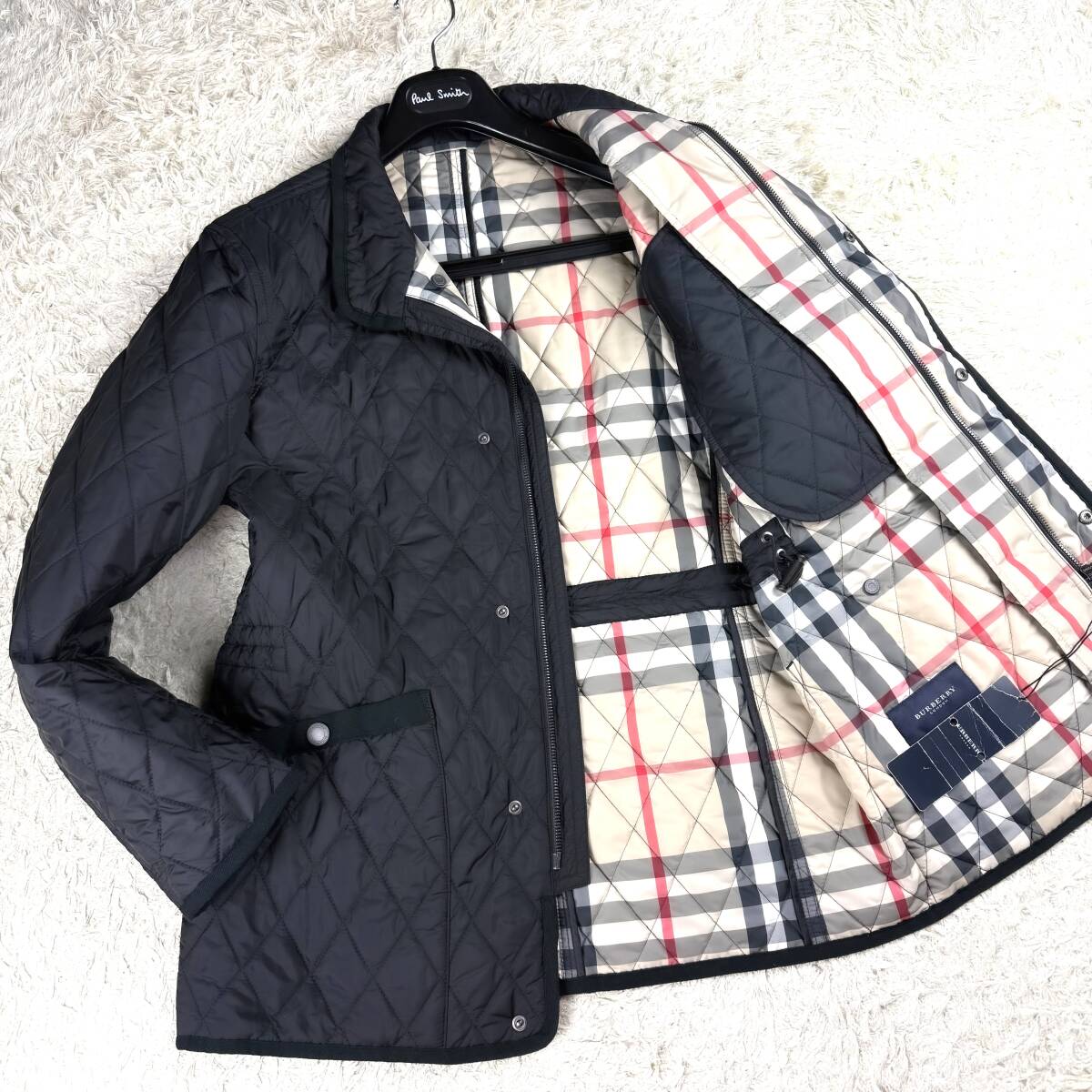 未使用級BURBERRY LONDON中綿キルティングダウンコートL~Mメガノバチェック柄キルティングジャケット黒ブラック大きいバーバリーロンドン