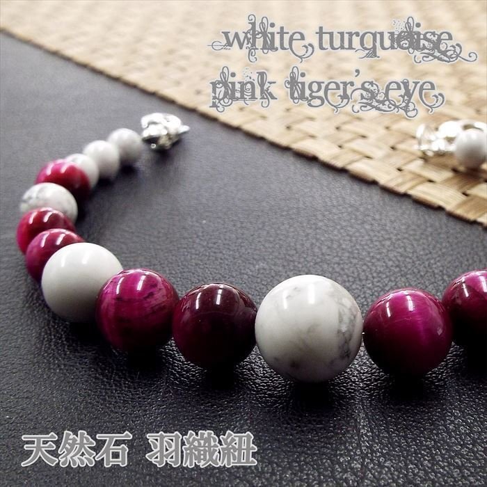 | 【STONE KITCHEN 天然石 パワーストーン】 大人気の天然石を使用した羽織紐♪ 幅広い年齢の方にお使い頂けます。 着物や帯だけでなく、それらを彩る小物でもおしゃれを楽しみたい♪ 着物姿を華やかに彩るお洒落で存在感のある天然石の羽織紐です☆ お気に入りの羽織りもこちらの羽織紐を付ければイメージも気分もUP!! 着物スタイルをドレスアップしてくれます。 奥ゆかしくも凛とした表情を際立たせる、伝統的な和の装い。細部までオシャレにこだわれば上品さも際立ちます♪ 取り付け留め具は初心者の方でも簡単なカニカンになります。 【サイズ】全長 約22cm 玉サイズ:ハウライトホワイトターコイズ 約12mm・約10mm・約8mm・約6mm ピンクタイガーアイ 約10mm・約8mm 留め具:カニカン 1点 注意事項 ※金属部分は汗や汚れ等で変色する場合がございます。 気になる場合は金属磨きや布等で軽くふき取る事をおすすめします。 ※石の種類によっては、艶を引き出すことを目的として、ワックスや着色加工がされているものもあります。 ※表示のサイズは必ずしも最大値・最小値のサイズのものが入っているわけではございません。 ※天然石のため同じものでも色味・模様などが異なります。 ※照明の具合で実際とは色合いが異なる場合がございます。 また、天然素材特有のクラック・内包物を有する場合がございます。予めご了承下さい。 | |