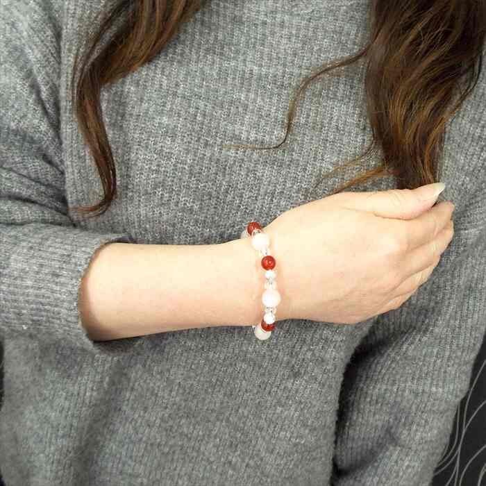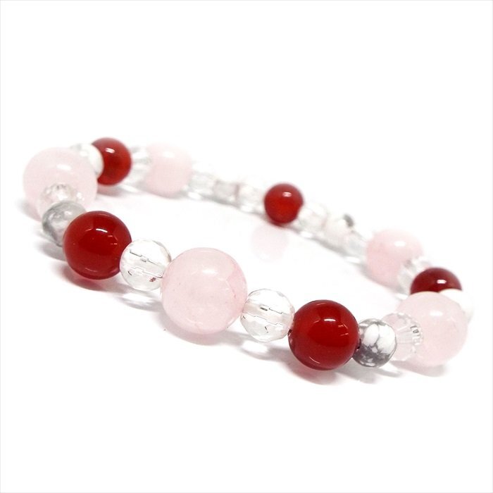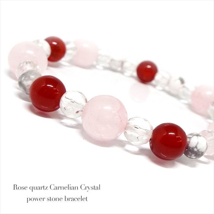 | 【STONE KITCHEN 天然石 パワーストーン】 パーツを使用してないので 金属アレルギーの方も安心に永くお使いいただけます! 沢山の愛情に包まれたいという あなたの願いに寄り添えるように 思いを込めて大人気の石を繋ぎました♪ ローズクォーツとカーネリアンの組み合わせは 縁結びや恋愛成就を含めて恋のお守りに 適した組み合わせだと言えます。 恋愛に限らず自分に自信が持てず 一歩踏み出す勇気が出ない そんなあなたに恋愛に対する勇気と積極性を与えてくれる組み合わせです。 内周:約16cm 玉サイズ:ローズクォーツ 約10mm カット水晶 約6mm カーネリアン 約8mm ホワイトターコイズ 約6mm 1点 注意事項 ※石の種類によっては、艶を引き出すことを目的として、ワックスや着色加工がされているものもあります。 ※表示のサイズは必ずしも最大値・最小値のサイズのものが入っているわけではございません。 ※天然石のため同じものでも色味・模様などが異なります。 ※照明の具合で実際とは色合いが異なる場合がございます。 また、天然素材特有のクラック・内包物を有する場合がございます。予めご了承下さい。 | ||