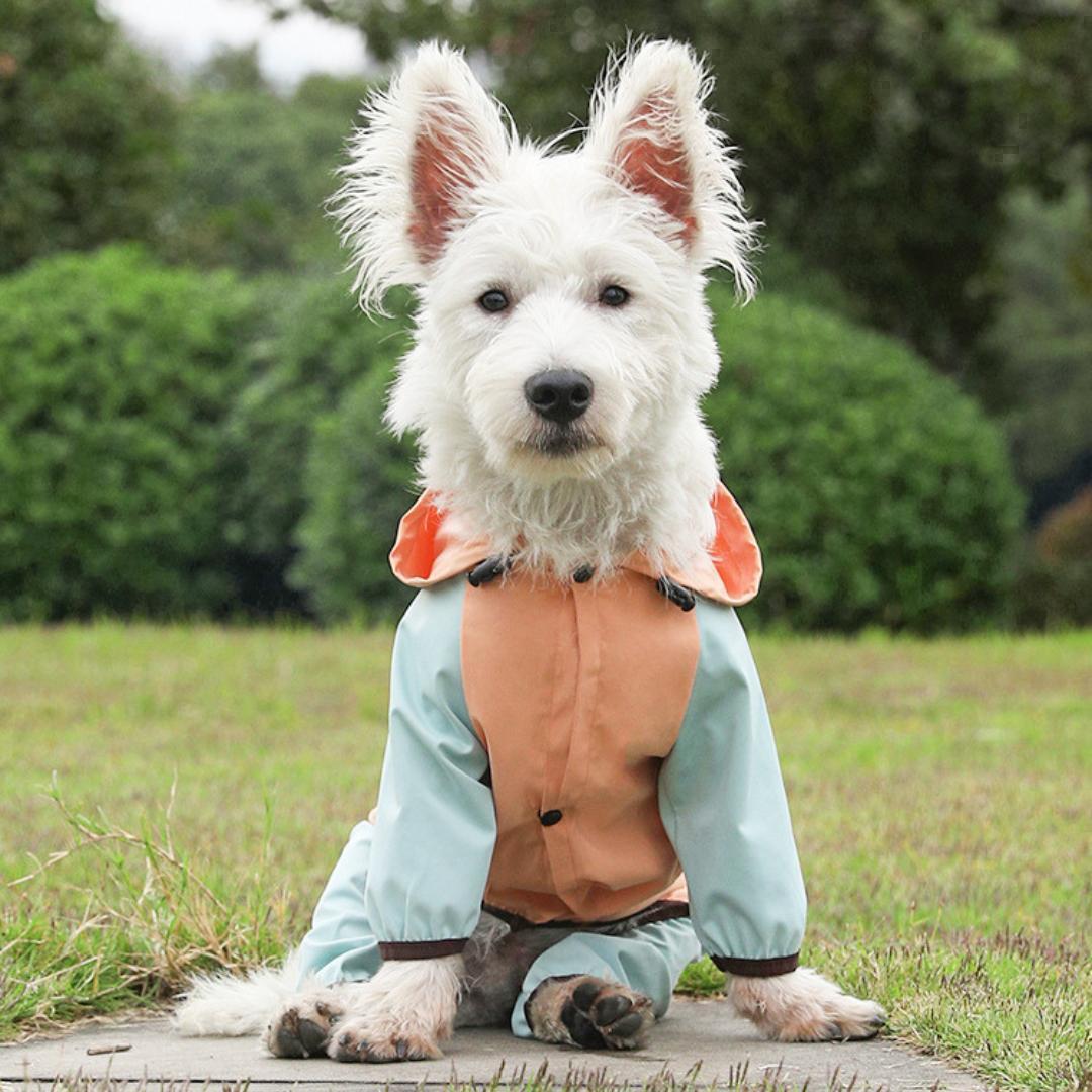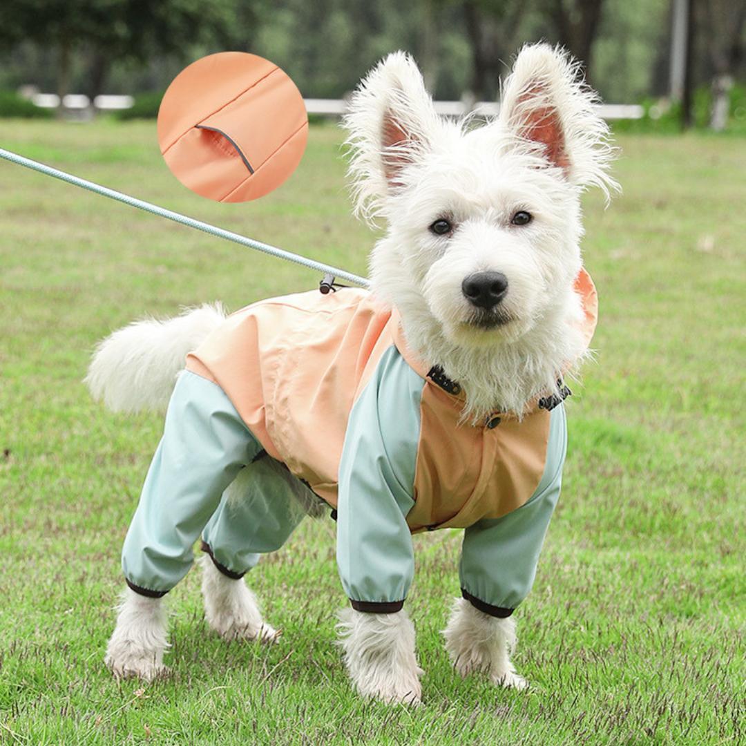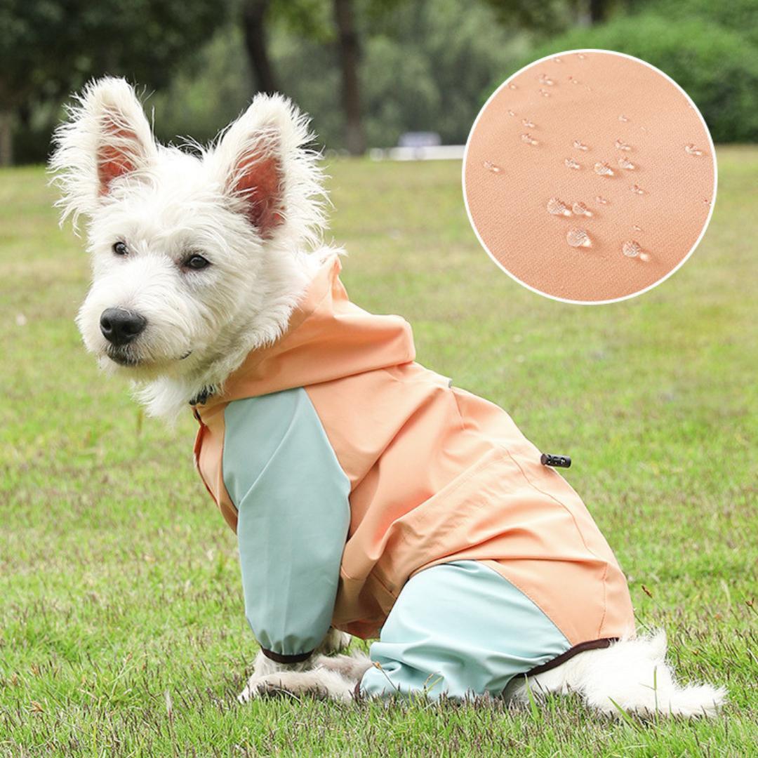 梅雨 雨 シーズンの ワンちゃん用 フード付き レインコート!夜間反射 付きなので夜遅くの散歩も安心。リード部分から水が中に入らないようにカバー付き