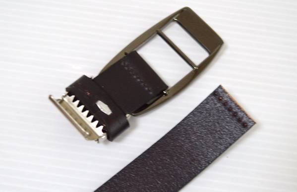 新品未使用品 好評の38mmミリ帯幅に続く30ミリの細幅タイプです。通常のベルトでは難しかった ピンもベルト穴がなく帯をバックルに通してとめる斬新ユニークな作りとなっています。そのため、フリーサイズでの使用が可能で、季節ごとに変わる服の厚みなど多少ウエストが増しても問題ありません。しかも、ベルトの締め過ぎによる穴の摩耗という心配が要りません。シンプルなバックルを使用していますのでビジネス/カジュアル/スポーツにも兼用で使える万能ベルトです。 革は厚みのあるしなやかな1枚の革を使用しています。