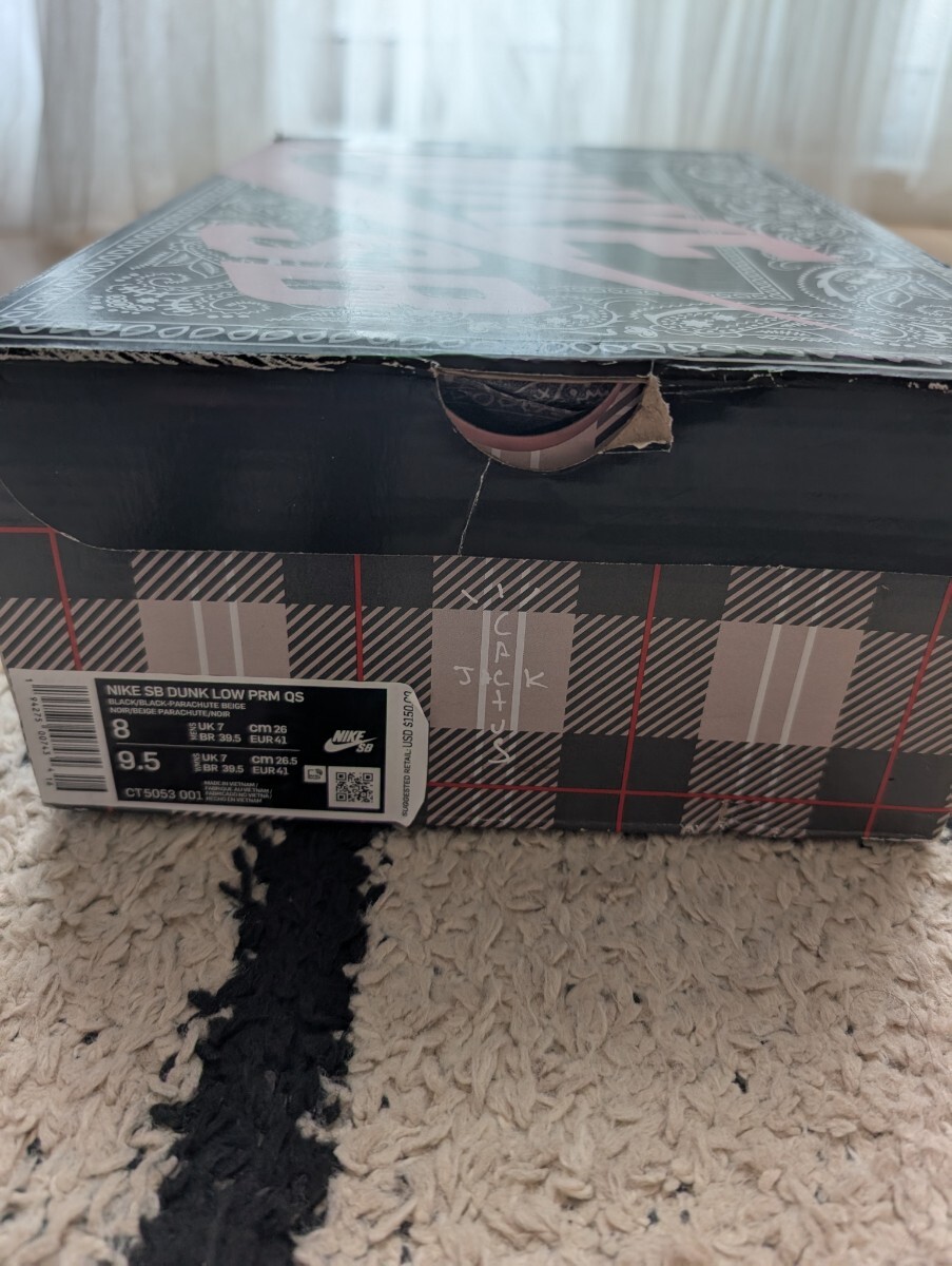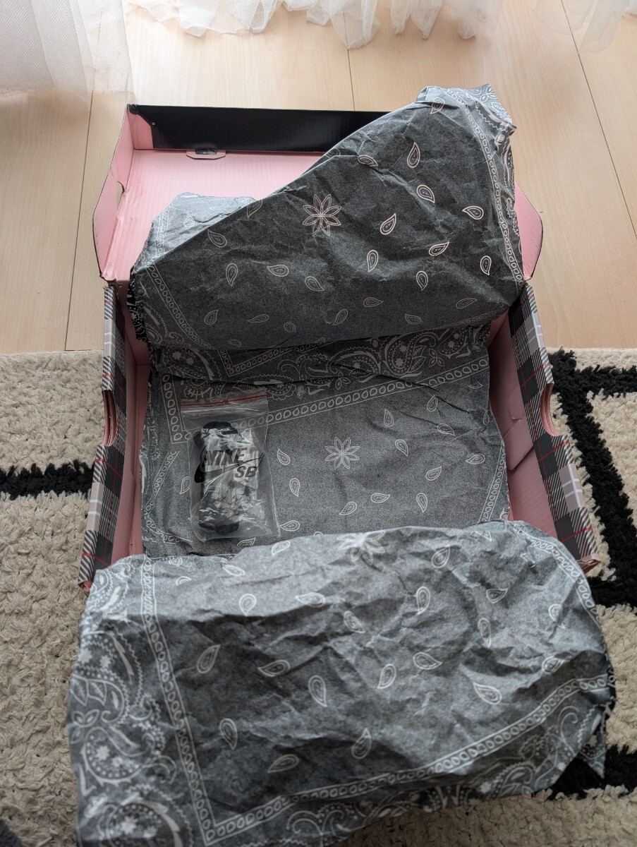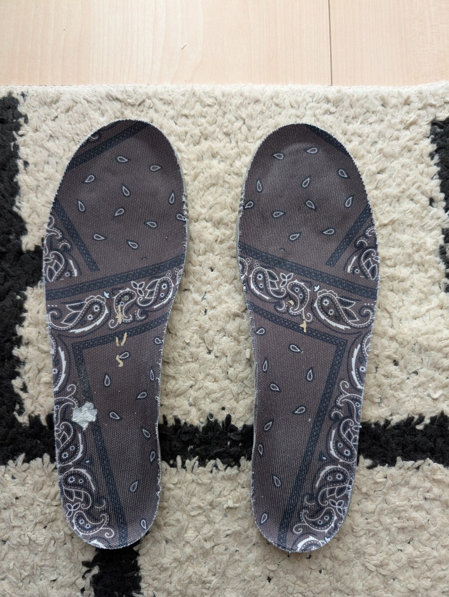 ebayにて購入当初から画像通り麻紐はありませんでした。スウォッシュ部分の色褪せ、右足部分に破れ箇所はありますが着用に支障あるダメージは無いと思います。