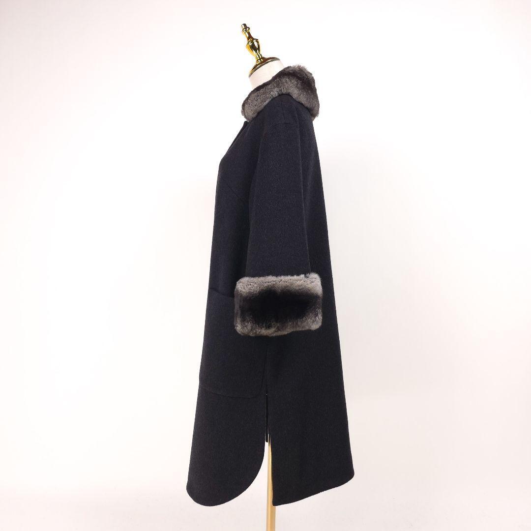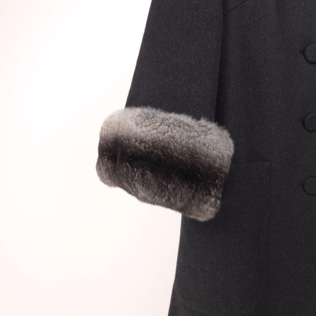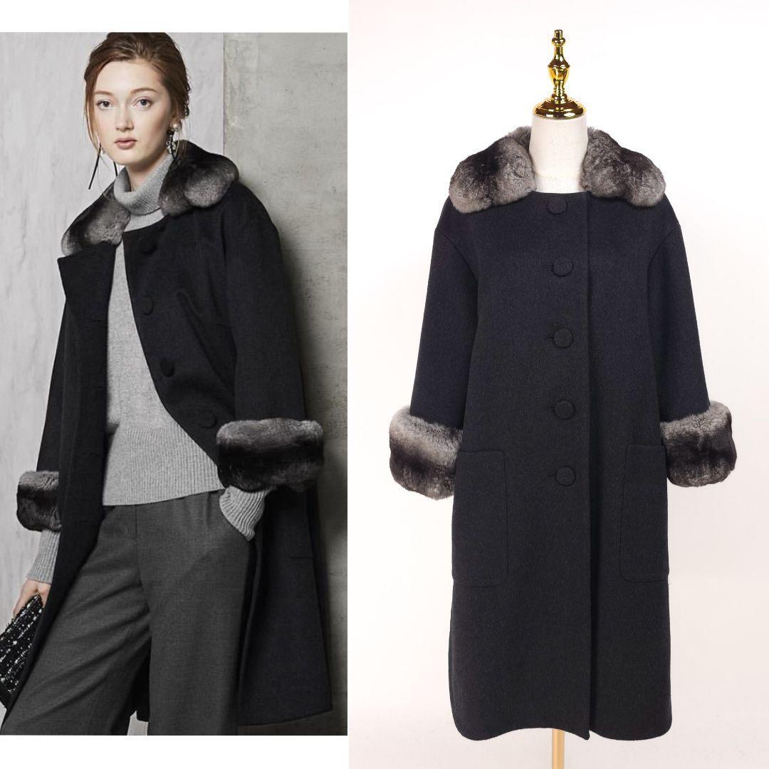 襟元と袖口には高級毛皮チンチラをあしらい、柔らかく上品な光沢感と極上のぬくもりを感じられる一着です。