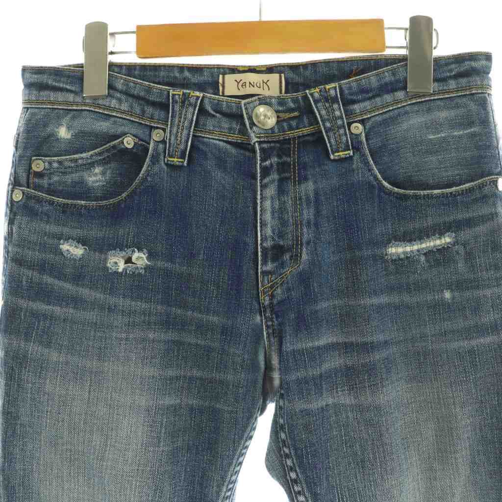 ヤヌーク YANUK KAY リラックスドスリム デニムパンツ ジーンズ テーパード ダメージ加工 25 ブルー /MY ■OS レディース