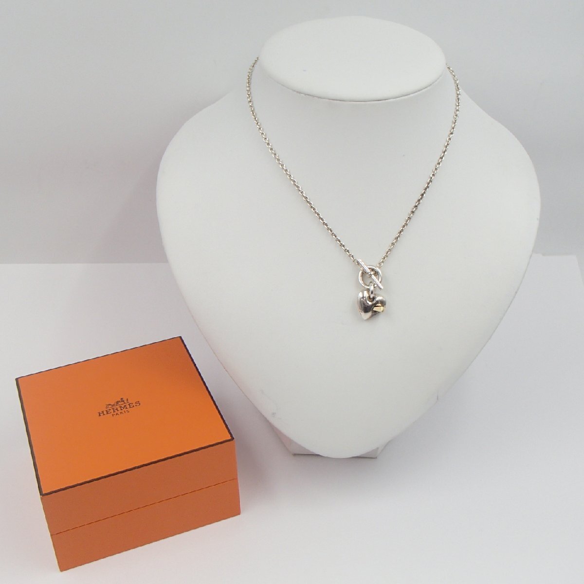 HERMES エルメス ハートリンク ペンダント トップ ネックレス ゴールドコンビ/ silver925 k18 約12.1g/ シルバー