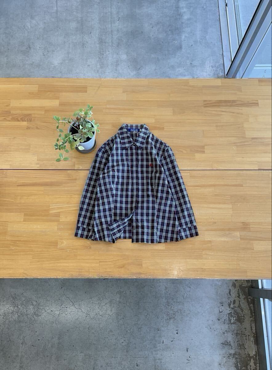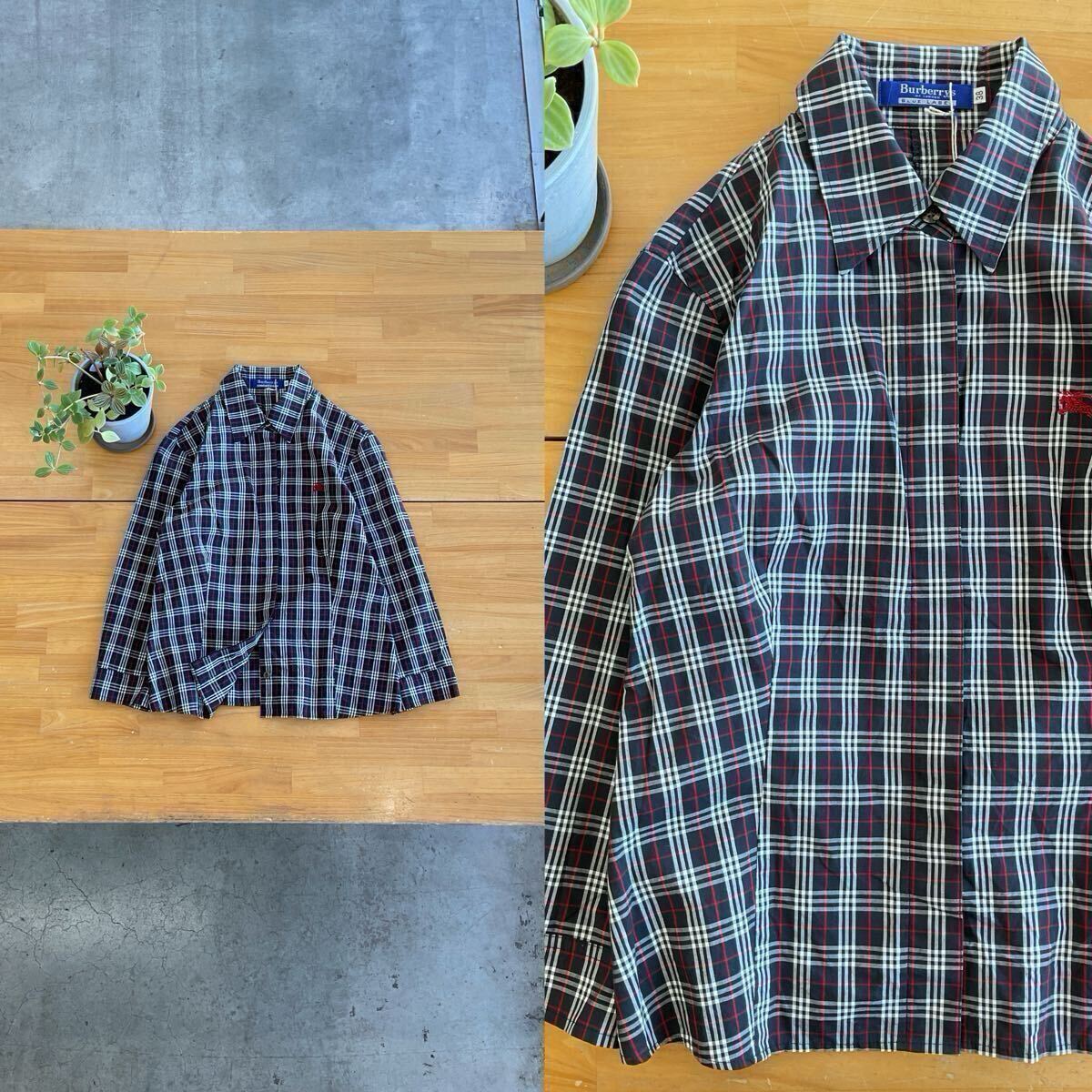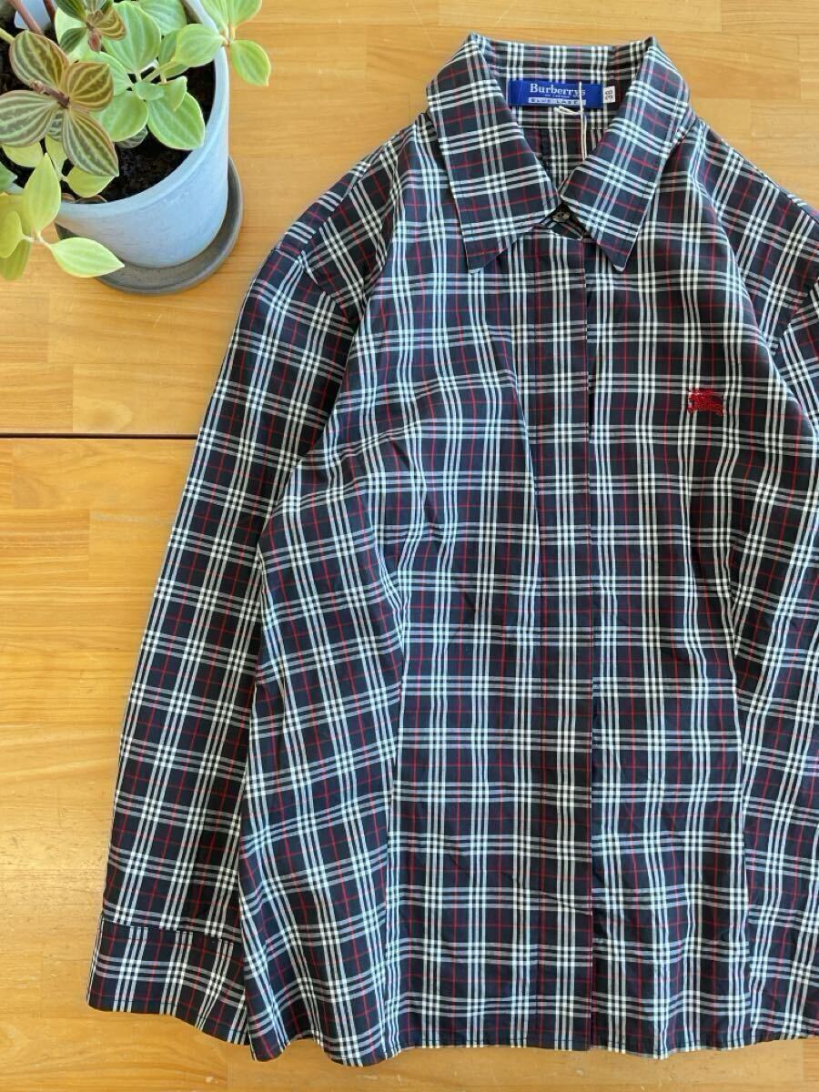 美品 BURBERRY バーバリー チェック柄比翼仕立てシャツジャケット フライフロントウエストシェイプスリムフィット ブラック赤色系 M h