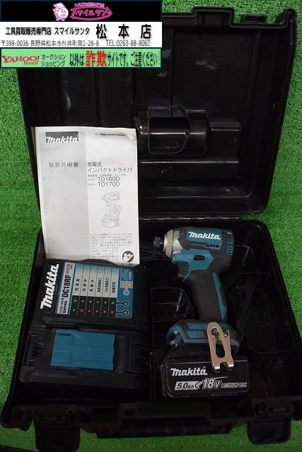 | 商品説明 | ※~※~※~※ 中古品 ※~※~※~※ 商品名:充電式インパクトドライバ 型番:TD170DRGX 回転数(min-1)[回転/分] :0~3600 打撃数(min-1)[回/分] :0~3800 付属品:本体・バッテリー(BL1850 18V 5.0Ah)×1・充電器(DC18RF) 中古品になります。 簡単に動作確認を行いました。 ※木材にネジがねじ込めるか確認 使用に伴う擦り傷・汚れみられます。 状態の良し悪しは写真にてご判断ください。 バッテリーは消耗品につき、保証対象外です。 ※充電回数:16回 エアパッキン・クラフト紙を利用しての 簡易包装にて発送となります。 店頭並行販売品です。 ごくまれに入札中に店頭にて販売となり 売り違いが発生してしまう場合がございます。 その場合は出品者都合での出品キャンセルを させていただくことがございます。 予めご了承ください。 【詐欺サイトにご注意ください】 日頃より当店をご利用いただき、誠にありがとうございます。 この度、当社の製品が、当社とは関係のない詐欺サイト上で掲載されていることを確認いたしました。当社の正規販売はYahoo!ショッピングおよびYahoo!オークションのみであり、これら以外のサイトとは一切関係がございません。 【お客様への重要なお願いとご注意】 詐欺サイトでのご購入は、個人情報や金銭の被害に繋がる恐れがあります。 不審なサイトには絶対にアクセスせず、個人情報の入力やご注文はお控えください。 被害に遭われた際は、最寄りの警察署または消費者センターにご相談ください。 万が一被害に遭われてしまった場合、誠に申し訳ございませんが、当社では被害に関する対応はいたしかねますので予めご了承ください。 お客様にはご心配をおかけいたしますが、ご理解ご協力のほどお願い申し上げます。 ★★★工具専門スマイルサンタ松本店 ヤフオク出品中です!!★★★ ★★★『工具専門スマイルサンタ松本店のヤフオクはこちら』★★★ 【ゆうパック 全国1200円 (沖縄:2300円)】 【ヤマト運輸 全国1650円 (沖縄:2650円)】 どちらか一方を落札後、ご選択頂きます。 | 出品店舗 | スマイルサンタ 松本店 |