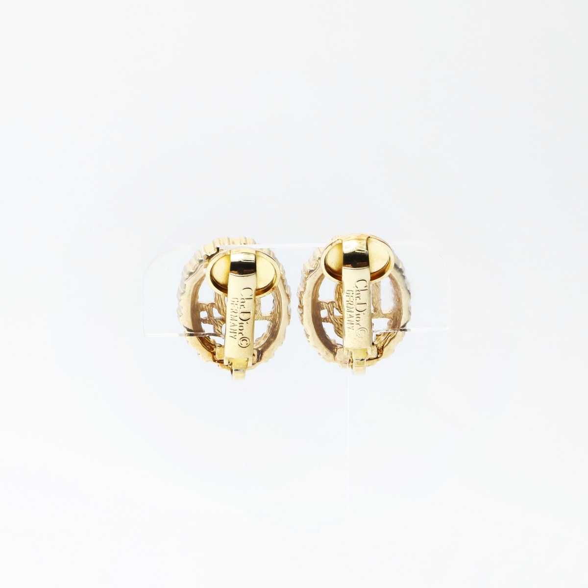 クリスチャンディオール Christian Dior イヤリング ロゴ ラインストーン ゴールド