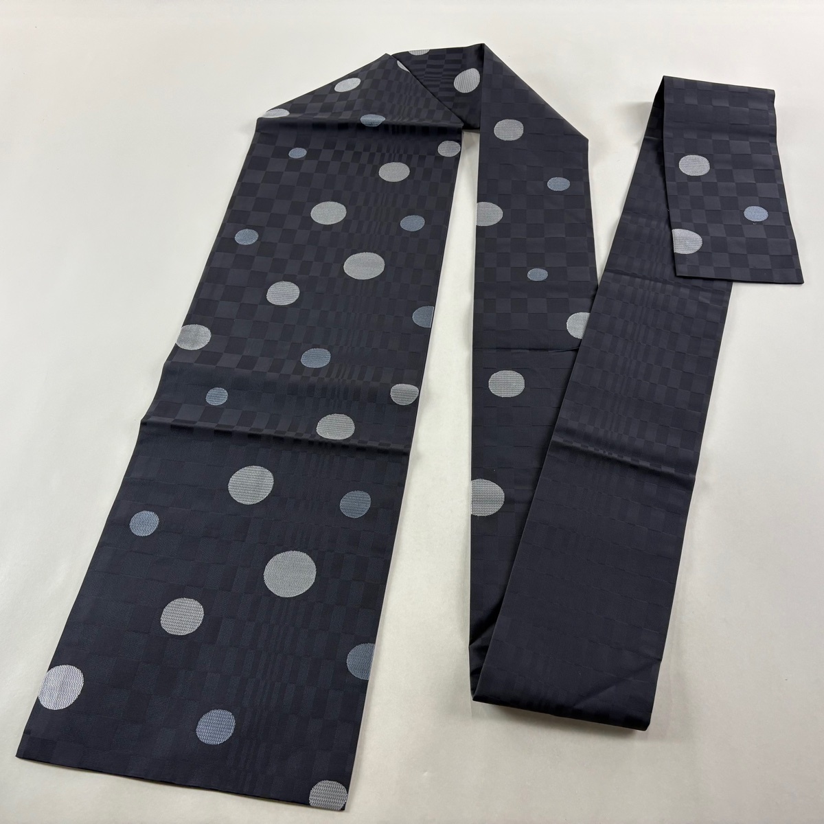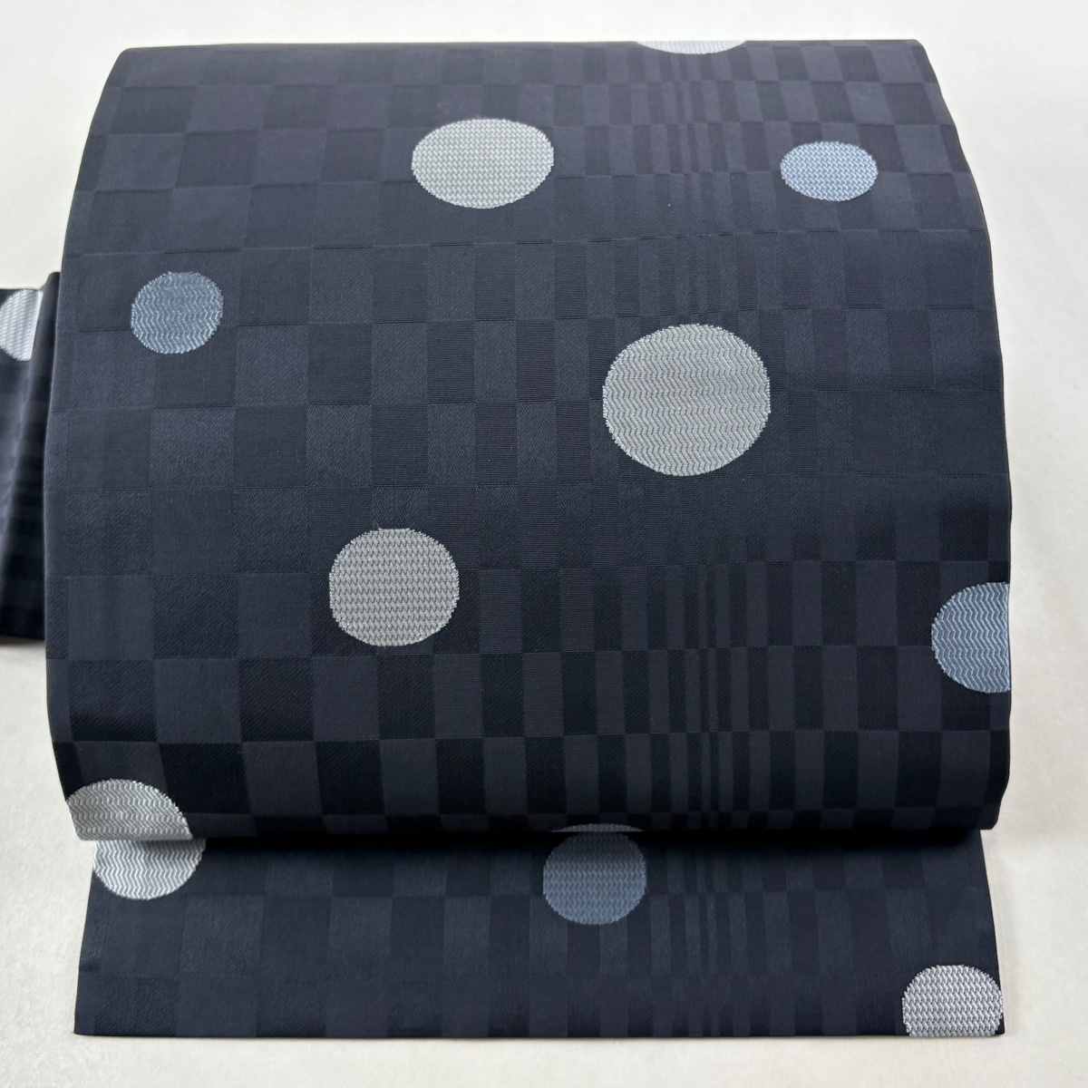 | 名古屋帯 美品 秀品 丸文 変わり市松 墨色 正絹 【中古】 |