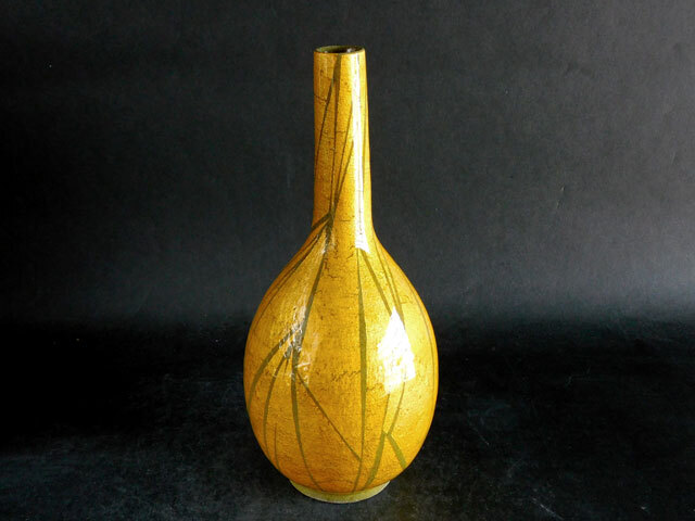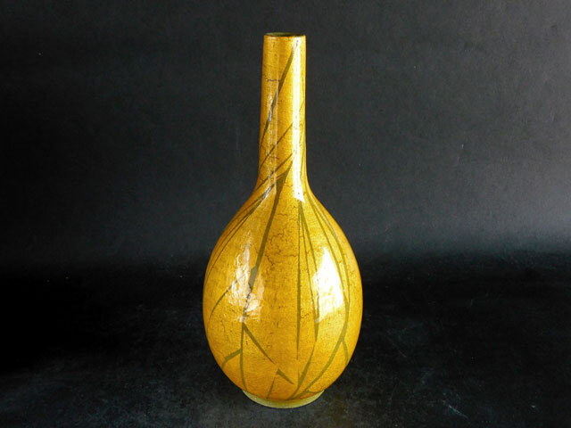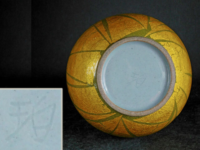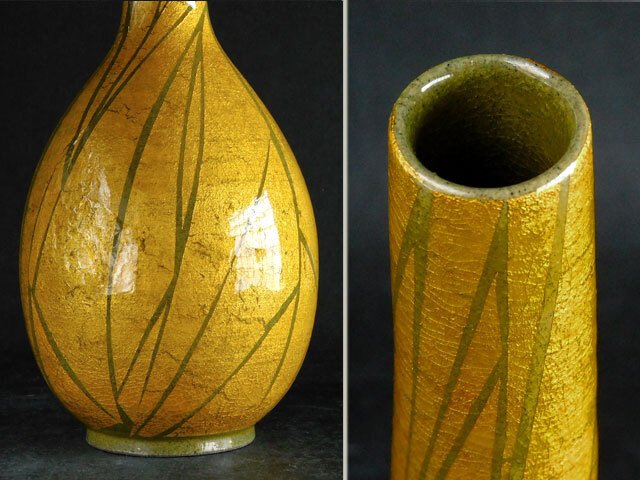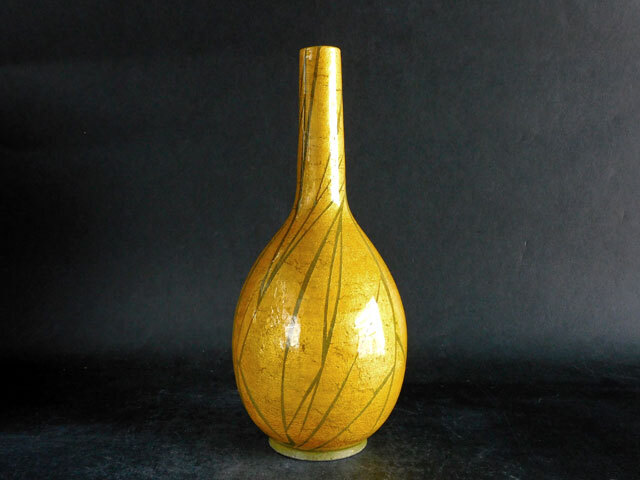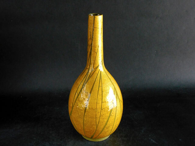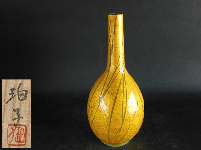 小野 珀子 釉裏 金彩 一輪立 一輪挿 花瓶 花入