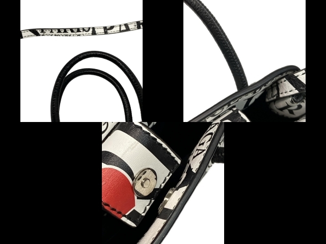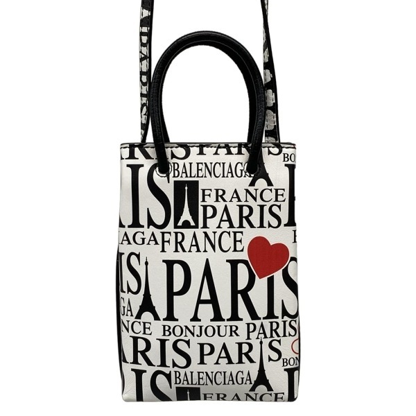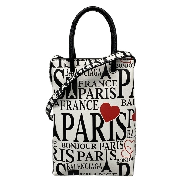 バレンシアガ BALENCIAGA ショルダーバッグ 593826 ショッピングフォンホルダー レザー 白×黒×レッド BONJOUR PARIS バッグ