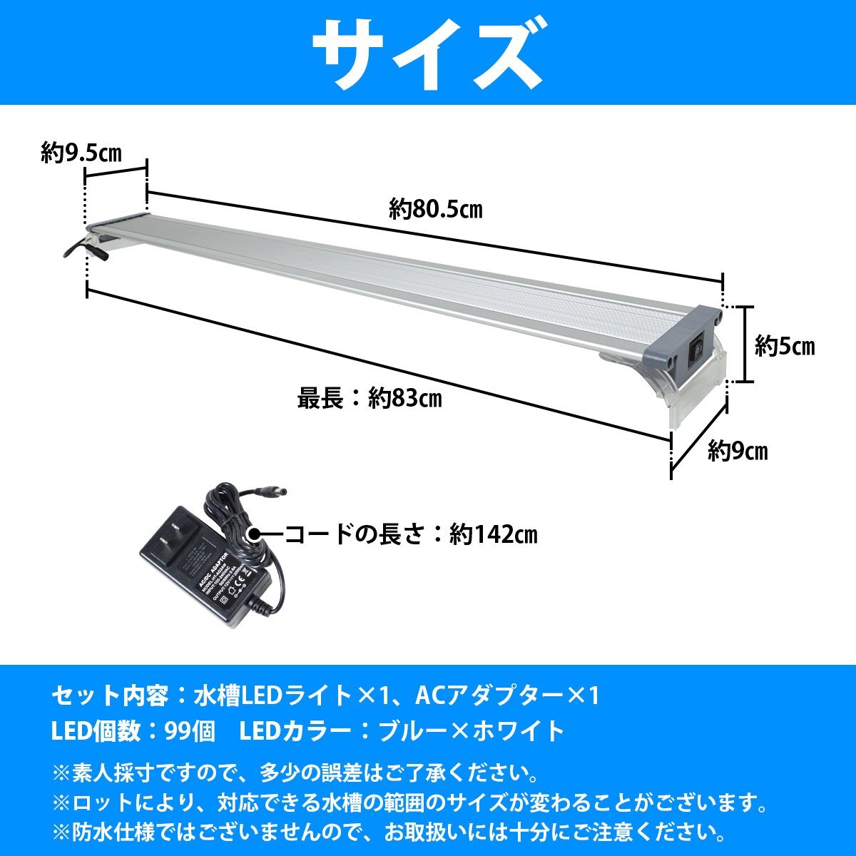 80cm-83cm 水槽用 照明 LED ライト ブルー×ホワイト 青/白 シルバー枠 アクアリウム ライト LED 照明 水槽 サンゴ 熱帯魚