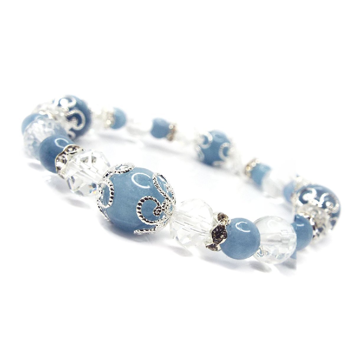 | 【STONE KITCHEN 天然石 パワーストーン】 ロマンチックな優美で美しいブレスレットに仕上がりました☆ カジュアルにもパーティーや華やかな場にも似合います♪ つけ心地はとても優しく、身につけているだけで 癒しを感じて心からのリラクゼーションが得られるはずです!! 愛のエナジーが満ちあふれ、その人本来の美しさや 女性らしさがキラキラと輝きはじめるはずです 【ブルークォーツ】 水晶の浄化力と、「青」というカラーが持つパワーを併せ持つとされ 冷静沈着さ、洞察力、論理的な思考やコミュニケーション能力を 強力にバックアップすると言われます。 研究や勉強、ディベート、頭脳スポーツ、瞬時の判断が 必要な時などのお守りにどうぞ♪ 内周:約16cm サイズ:ブルークォーツ(天然クォーツ染め) 10mm・6mm 水晶 ミラーボールカット 8mm 1点 注意事項 ※金属部分は汗や汚れ等で変色する場合がございます。気になる場合は 金属磨きや布等で軽くふき取る事をおすすめします。 ※石の種類によっては、艶を引き出すことを目的として、ワックスや着色加工がされているものもあります。 ※表示のサイズは必ずしも最大値・最小値のサイズのものが入っているわけではございません。 ※天然石のため同じものでも色味・模様などが異なります。 ※照明の具合で実際とは色合いが異なる場合がございます。 また、天然素材特有のクラック・内包物を有する場合がございます。予めご了承下さい。 | |||