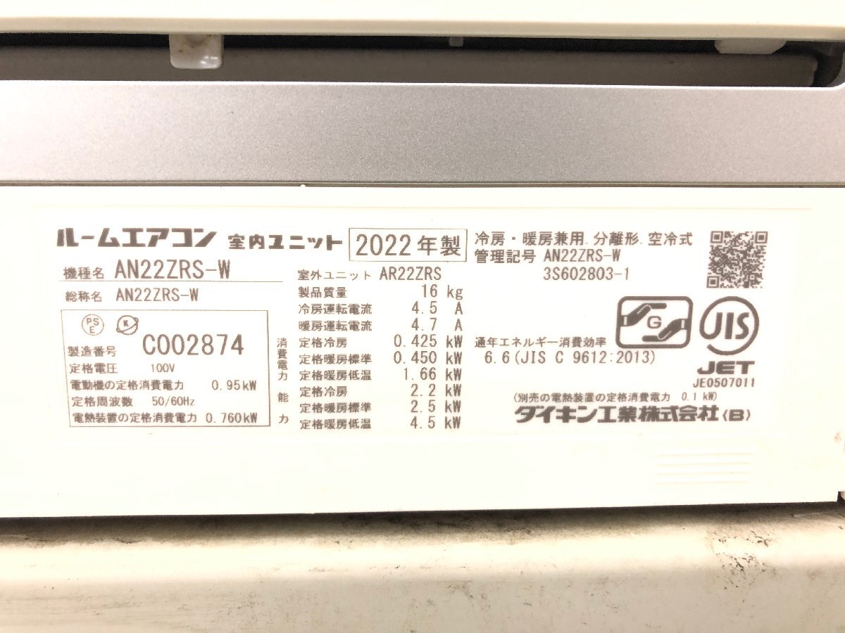 | ◆コンディション◆ 【動作確認】 冷暖房ともに正常に動作することを確認しています。 【本体】 フィルターに変色があり、シロッコには取り切れない汚れが見受けられます。 また、フィルターに破れがありますが、その他破損等はなく動作に問題のないお品です。 ◆付属品◆ 室内機取付ベース(取付板) リモコン その他画像の物が全てです。 ※配管は、一般的にお取付け業者が用意するものですので、付属しません。 ※加湿ホース、排気ホース類も、設置環境により必要な長さ等異なりますので、付属しません。 ※室外機スタンドは取り外した状態でお届け致します。 |