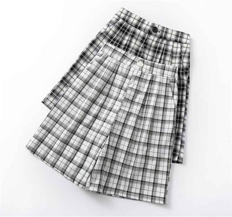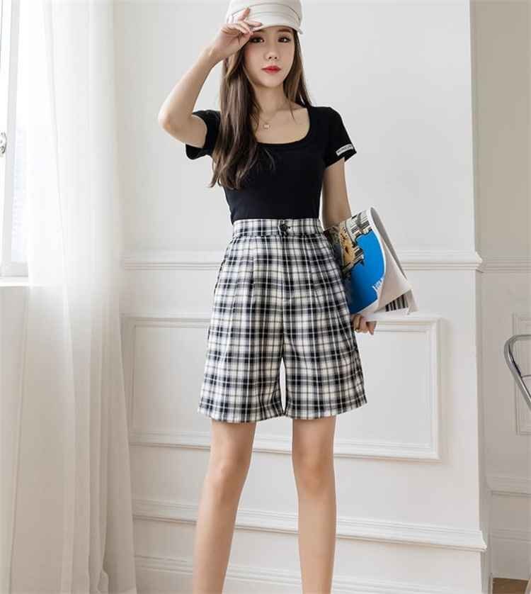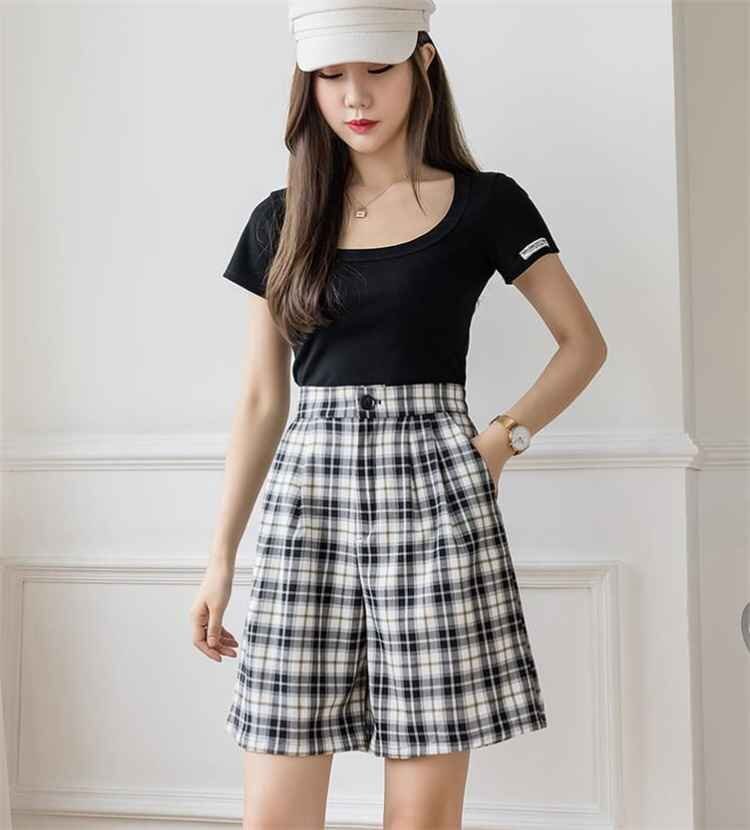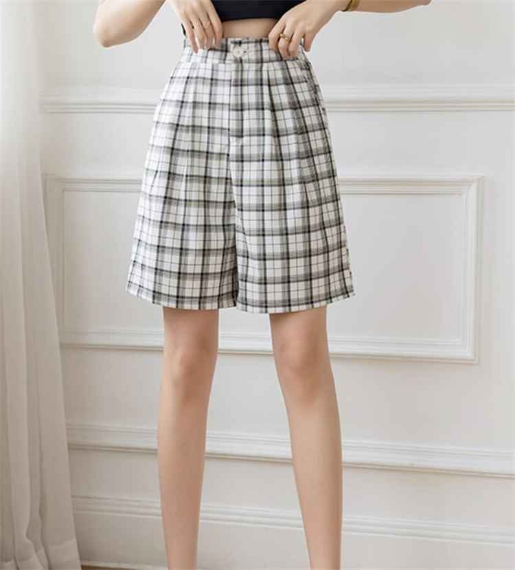 チェック柄 ショートパンツ ハイウエスト ワイド カジュアルパンツ ショート丈 L ブラック