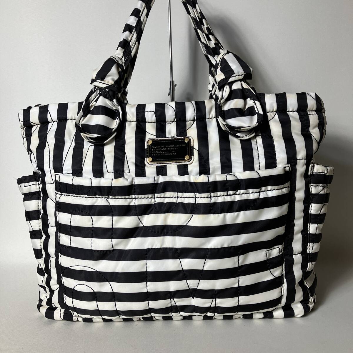 710B467| 【 ブランド名 】MARC BY MARC JACOBS マークバイマークジェイコブス 【 アイテム名 】- 【 カテゴリ 】トートバッグ 【 素材 】ナイロン 【 カラー 】バイカラー ブラック×ホワイト 【 その他 】ボーダー×ストライプ 【 付属品 】- 【 状態 】外側:黄ばみ汚れあり ⇒ご購入前に必ず写真にてご確認ください 【 サイズ 】(cm) ※実寸値 縦×横×幅:35×38.5×12 ハンドル:49 【 仕様 】 ( 収納ポケット ) 外側:マグネット2,オープン2 内側:ファスナー1,オープン4 ( その他 機能 ) なし 《 備考 》 ・コピー品の類は一切取り扱っていませんのでご安心ください。中古品は商品の状態に合わせて価格を決めていますので低価格の場合もございますが正規品に間違いありません。 ・商品の状態につきましてはこれまでの経験に基づき評価させていただいておりますが、あくまで個人の主観となりますので神経質な方は購入をお控えください。 ・出来る限り現物の状態が分かるように出品しておりますが記載のない不明点等ありましたらお気軽にコメントいただければと思います。