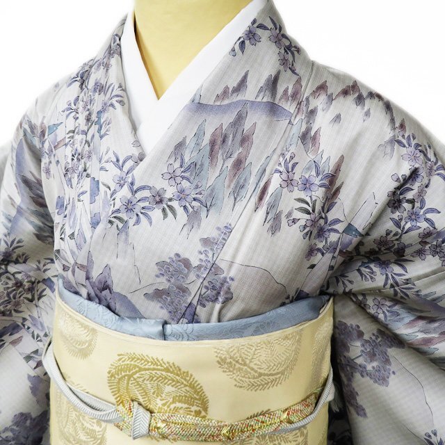 丈156cm(+20) 裄61.5cm(+7.5) 袖丈47cm(+5) 前幅22.5cm 後幅28cm ※サイズのお直し、承ります。 (身丈のみ、身幅のみのお直しは承っておりません) ※身丈は肩から測っております。 ※()内はおおよそのお直しいただける長さです。胴裏の長さ等によって()内の長さ通りお直しできない場合があります。 単位:cm 素材 正絹 商品ランク C ●着用時期 10月~5月(+-2週間) ●着用シーン お出かけ、観劇、お買い物、パーティー、式典(簡易)など ●お色 絹鼠色 多色 ハリがある生地、シュッシュッと耳心地良い衣擦れの音… 軽やかでさらりとした手触りの、たいへん軽く肌心地の良いこの織りあがりを、是非お手元でもご堪能いただきたく思います。 左肩辺りに薄シミがございますが、目立たない程度でまだまだご着用いただけるお品物です。 写真に写っている着物のみの販売で帯等の付属品はついておりません。 一部商品は実店舗・他サイトでも並行して販売しておりますので売り切れの際はご了承ください。 その他多数販売中 ga- | ||||||