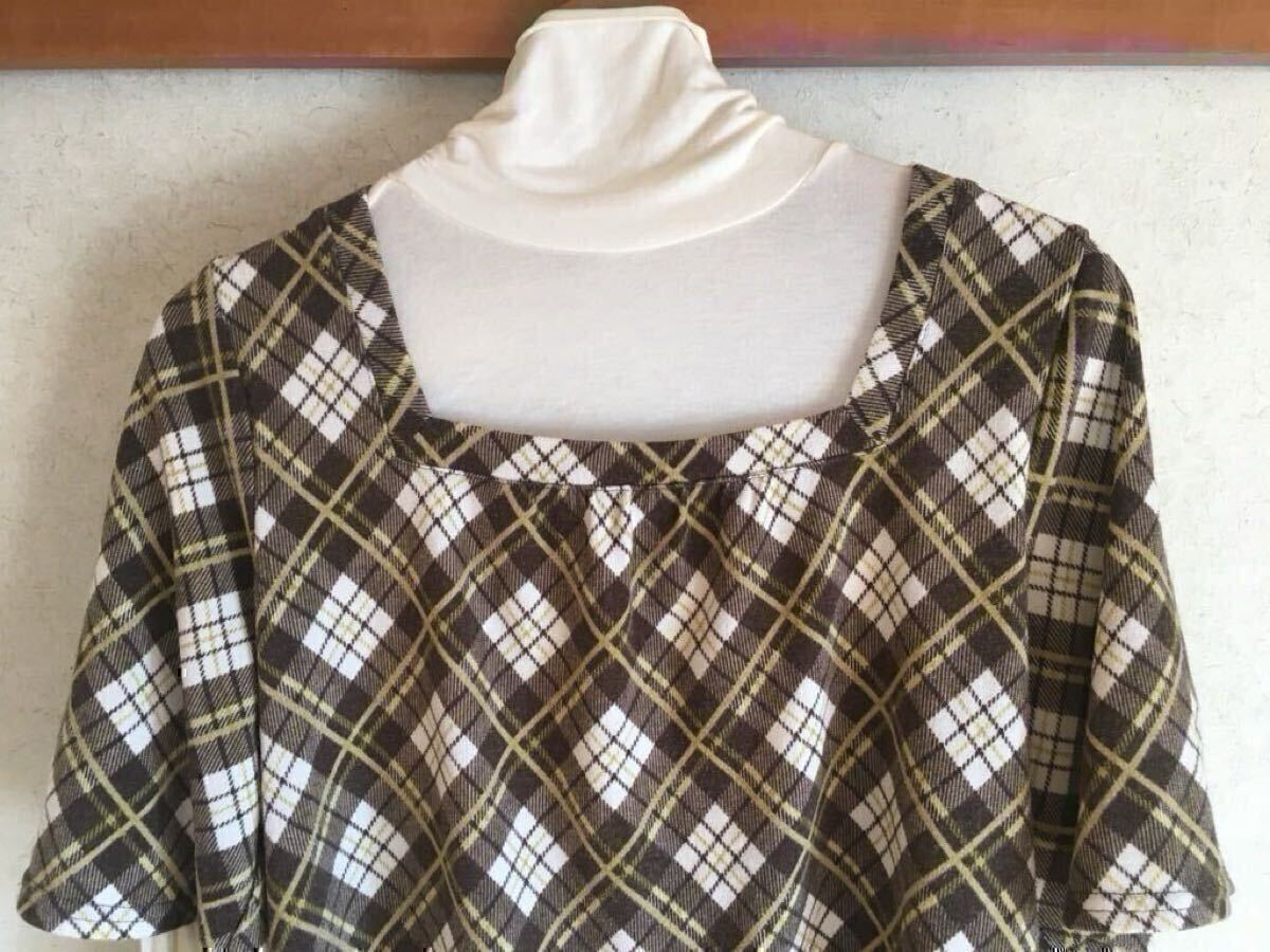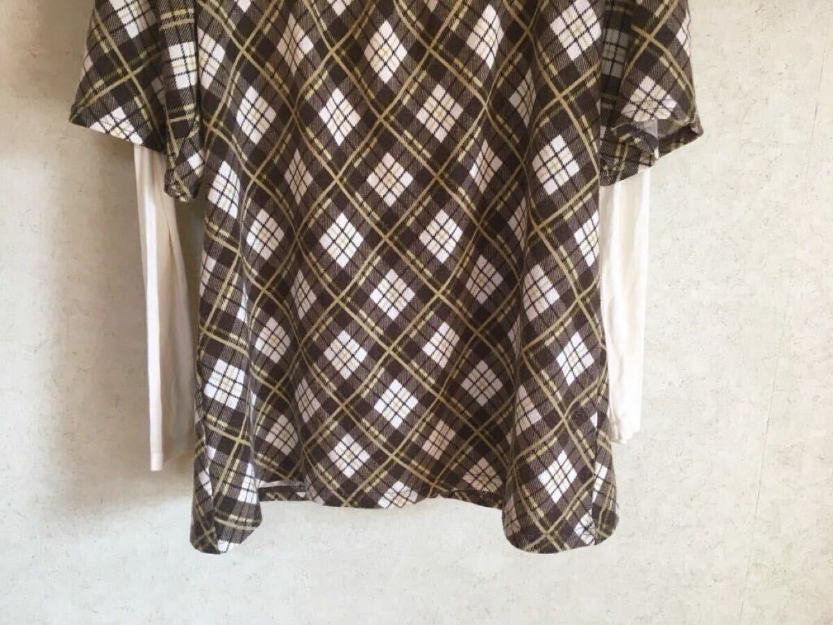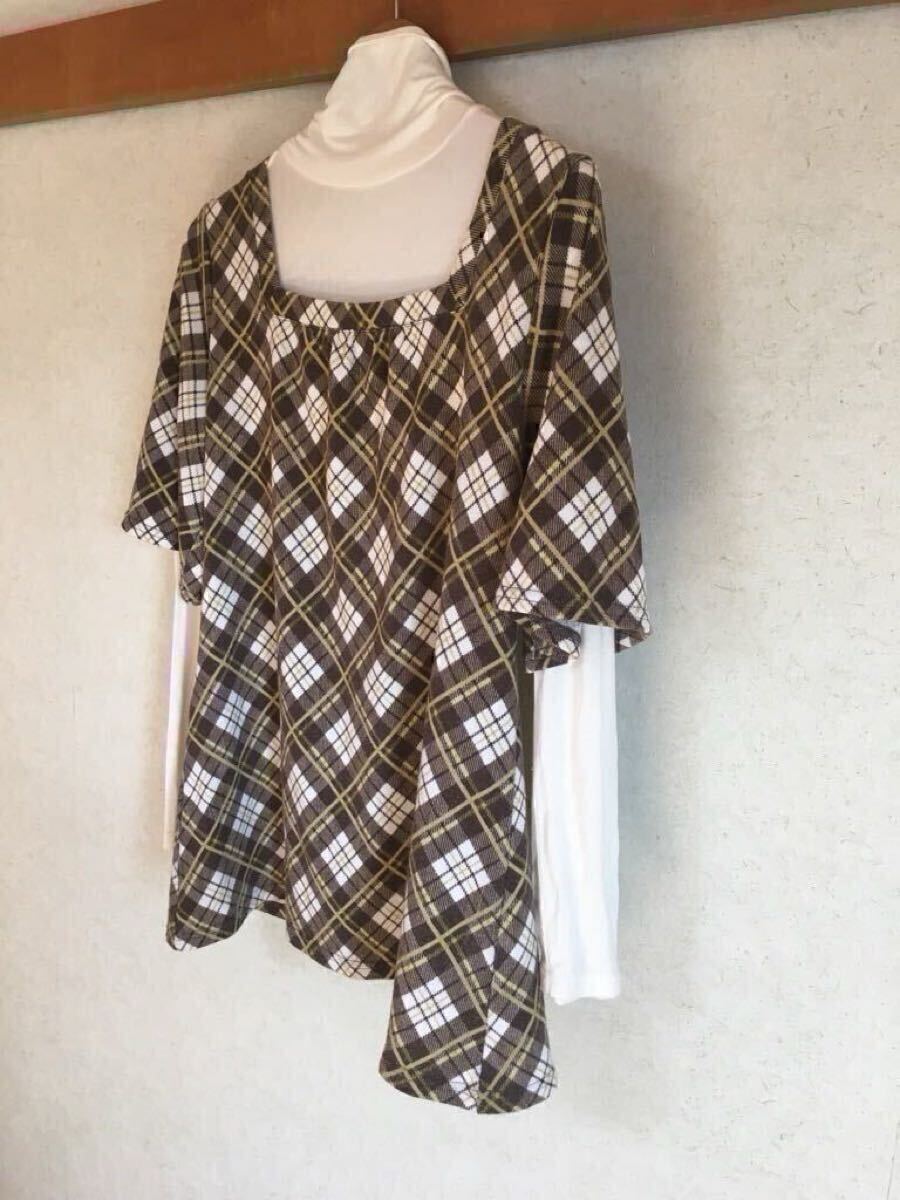 ・商品名 : レディ-スアンサンブル・ブランド : ESPRITMUR・色柄 : アウタ-→ ブラウンとクリ-ム色の濃淡格子柄 インナ-→ オフホワイト・サイズ : L バスト 86~94 身長 154~162・素材 : アウタ-→ ポリエステル 95% ポリウレタン 5% インナ-→ アクリル 48% レ-ヨン 48% ポリウレタン 4%**** アウタ-は五分袖、インナ-はタートルネック で両サイドシャ-リング入り 未使用品
