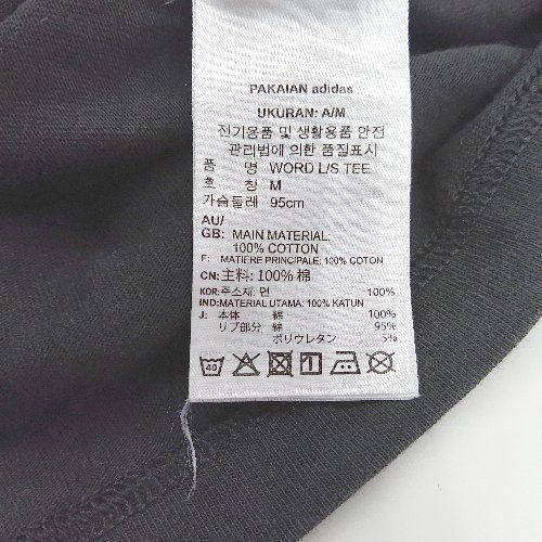 ◇ adidas アディダス ロゴプリント ルーズフィット カジュアル 長袖 Tシャツ サイズM ブラック メンズ E