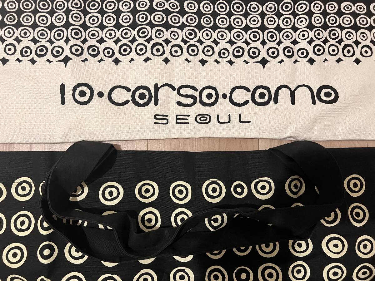 白と黒のコンビネーションの方は、韓国のコルソコモでジュンヤのシャツを購入したときに頂いた限定のバッグになります。