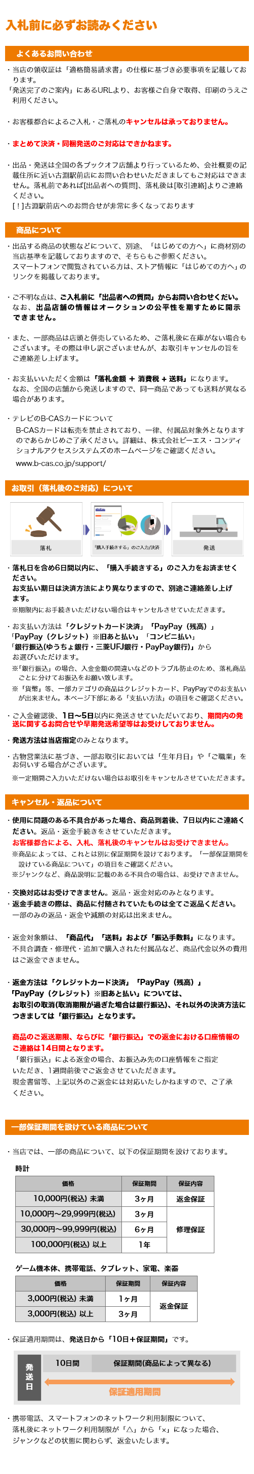 ・本商品は店頭と併売になっており、入札以前に商品が販売されてしまう可能性が御座います