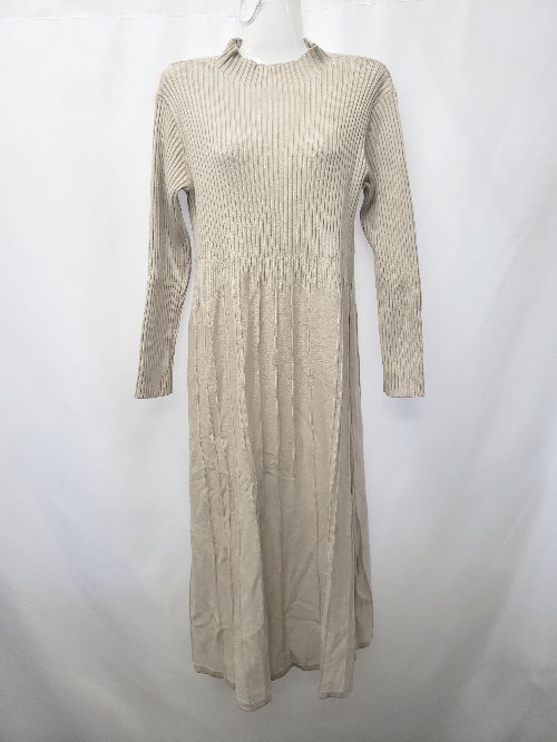 ◇ ⊇ Thevon ゼボン ハイネック リブ 長袖 膝下丈 ワンピース サイズF ベージュ レディース E