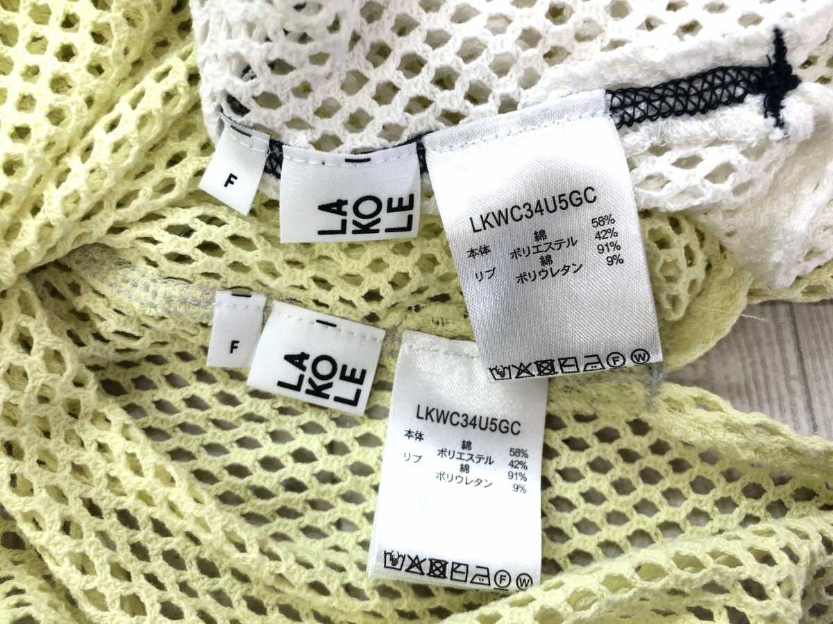 ラコレ LAKOLE ストリート スポーティー フィッシュネット リンガートリム 長袖トップス 2点セット レディース コットン混合 F 黄色/白です。