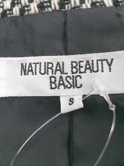 ■ NATURAL BEAUTY BASIC ナチュラルビューティーベーシック スタンドカラー 総柄 ダブル コート S ブラック ホワイト *