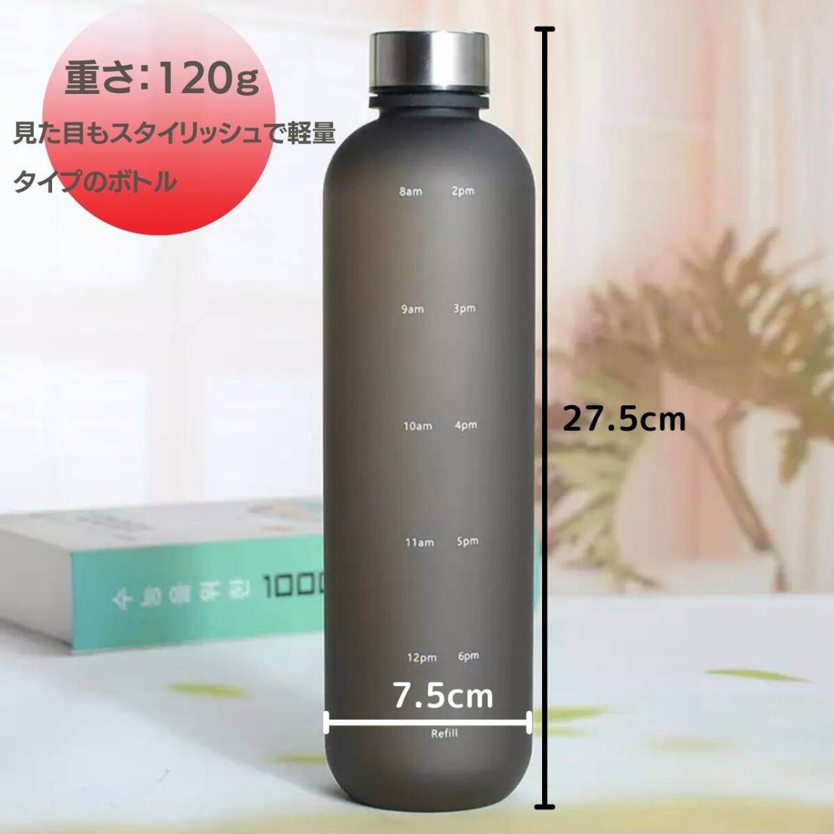 【SNSで話題!在庫限り!】モチベーションの上がるウォーターボトル、水筒【カラーについて】商品画像1枚目、タイトルをご確認ください。【容量】1リットル【生活のお供に】見た目のお洒落なデザインからインテリアとしても大活躍するアイテムとなっております。容器には1時間ごとの目盛が記載されており、適切な水分摂取量のお手伝いをいたします。【1日2Lの水を飲むとよい】そんなことを聞いたことがある方が多いと思います。ただ普通に生活をしていると忘れがち、、、そんな方にタイムマーカーと可愛いデザインのウォーターボトルが水分摂取量を測定するのに最適です。水分補給と一日中十分な水を飲むことを思い出させます。【幅広い用途】サイクリング 登山 旅行 ランニング ヨガなどのアウトドアスポーツに適しています。家庭 オフィス フィットネスなどの日常生活でも大活躍するボトルとなっております。シンプルなのにお洒落、かつ【自身のモチベーションも上げてくれるボトル】プレゼント、ギフトにも最適な商品となっております。【注意事項】・海外製品の為、多少の傷や汚れがある場合がございます。・送料の都合箱なし上簡易包装での発送となります。コメントなしでの即購入可能です。おまと買いでお値引きさせて頂きます。お気軽にコメントください。水筒 sns映え インスタで話題 ヨガ スパ おしゃれ 美容 美肌 ダイエット運動会 ピクニック キャンプ ジム 自炊 節約 ポイント消化 可愛いかわいい ピンク ブラック ホワイト ブルー パープル オレンジ 桃 黒 白 青 紫 橙 黄 ペア シェア