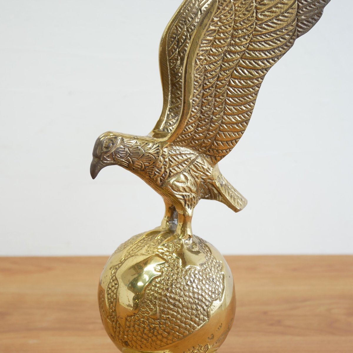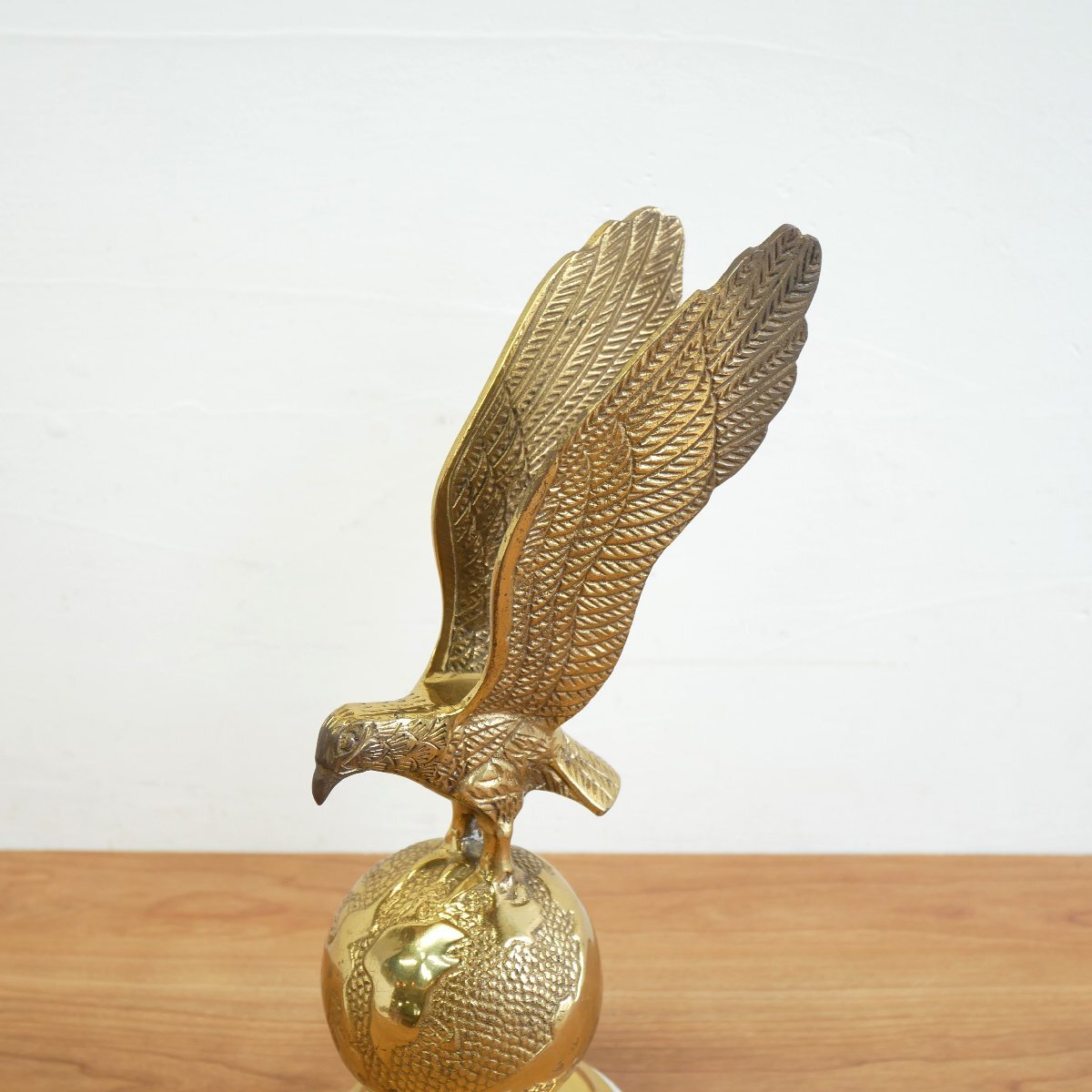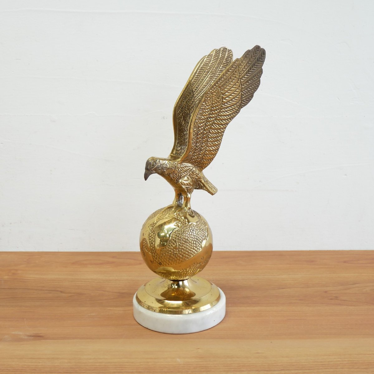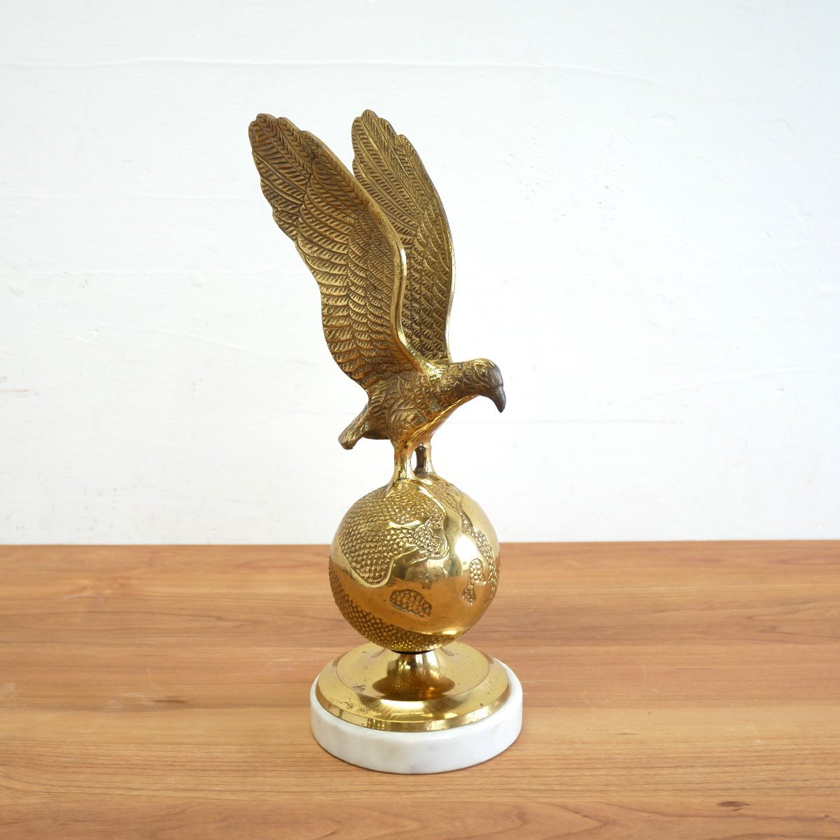 | 商品説明 explanation | 地球に乗ったイーグル(わし)を模した真鍮製の置物です。 フォルムが美しく、躍動感があり、とてもいい雰囲気です。 インテリア小物にいかがでしょうか。 |