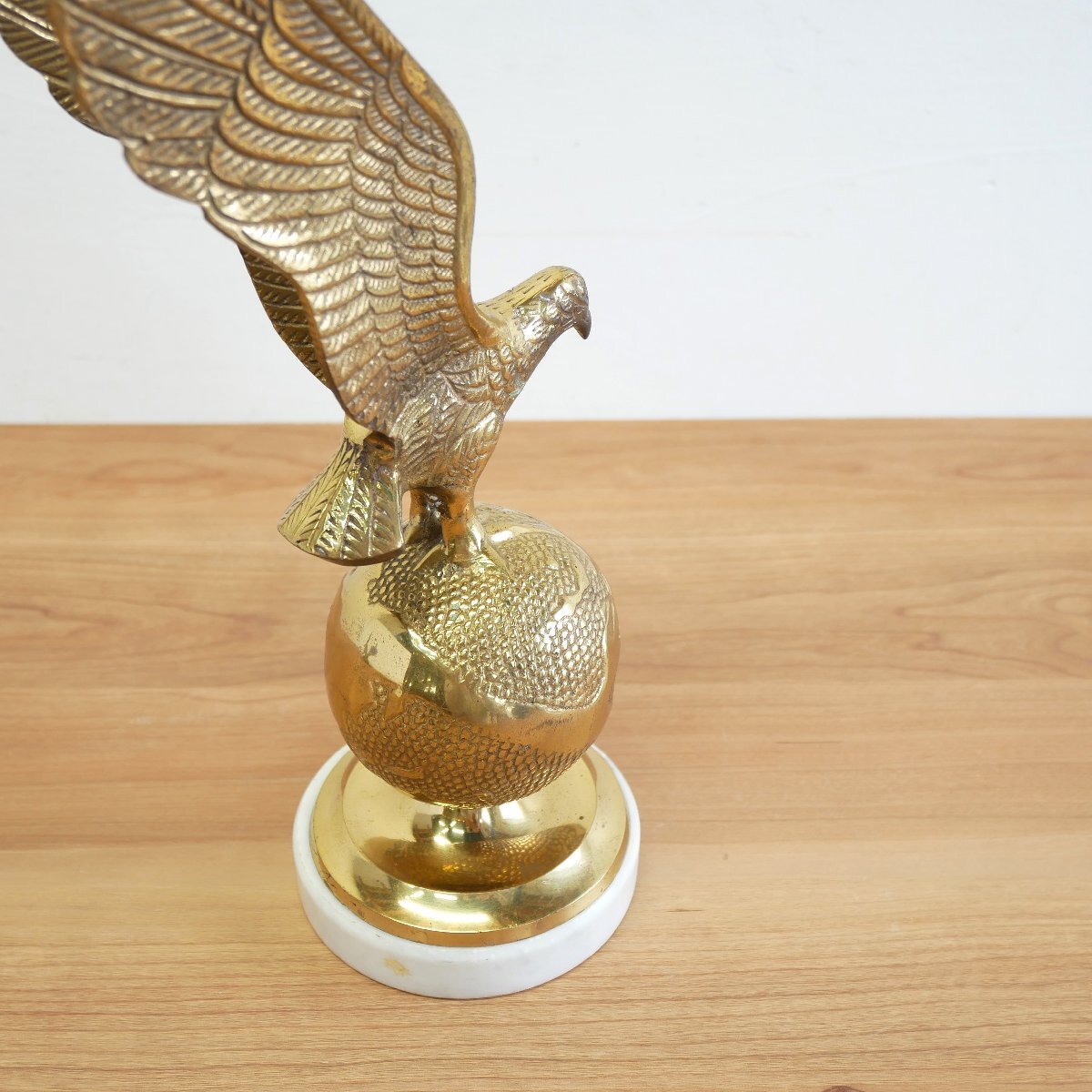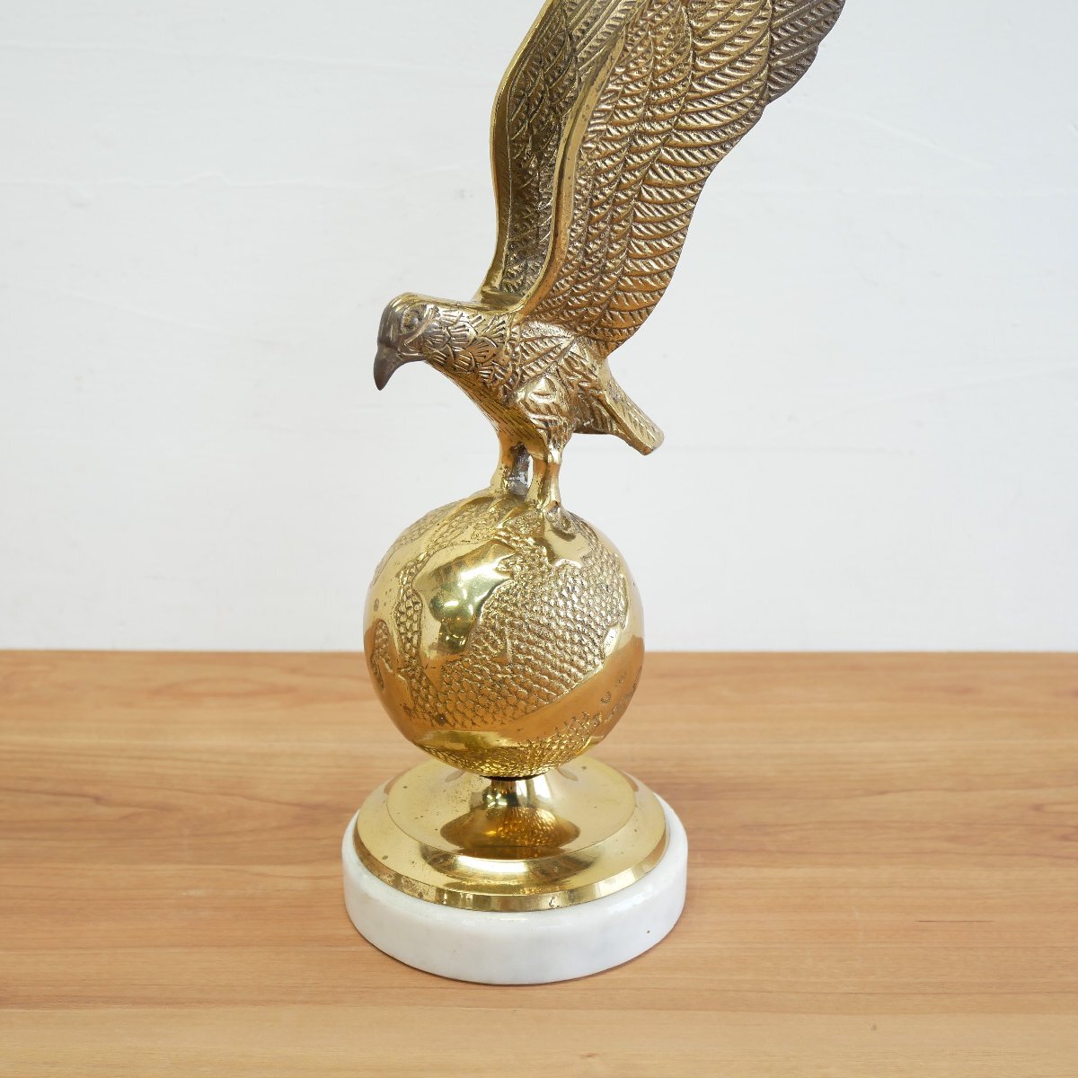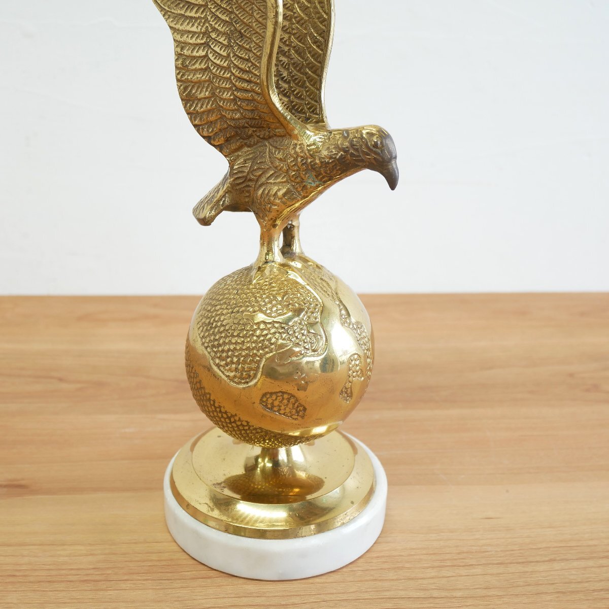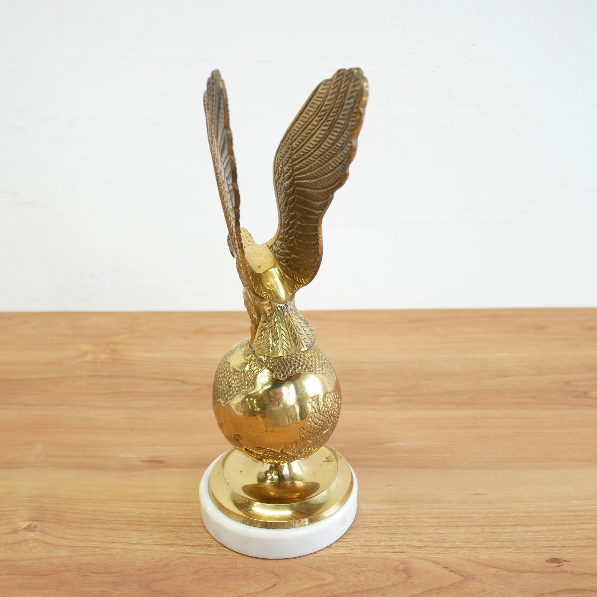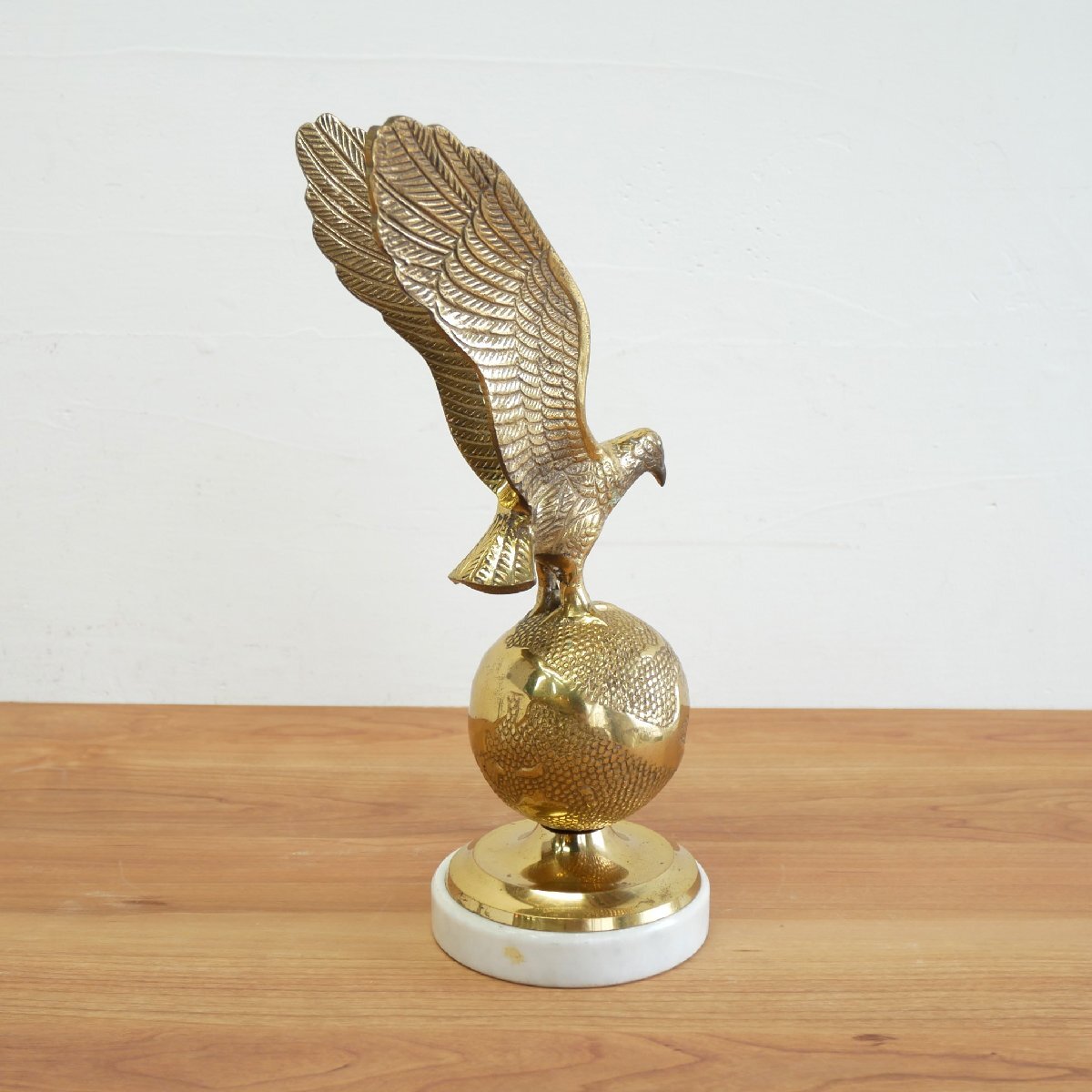 | 商品説明 explanation | 地球に乗ったイーグル(わし)を模した真鍮製の置物です。 フォルムが美しく、躍動感があり、とてもいい雰囲気です。 インテリア小物にいかがでしょうか。 |