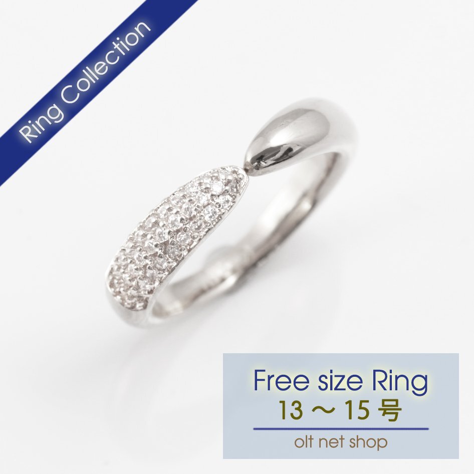 13号~15号 調整可能リング/ 新品 指輪 K18GP フリーサイズ シルバー 18金 ホワイトゴールド レディース パヴェ ダイヤ CZ プレゼント 女性