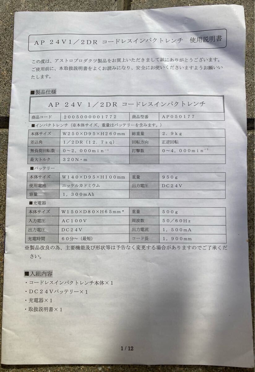 アストロプロダクツ1/2DRコードレスインパクトレンチ24Vになります。