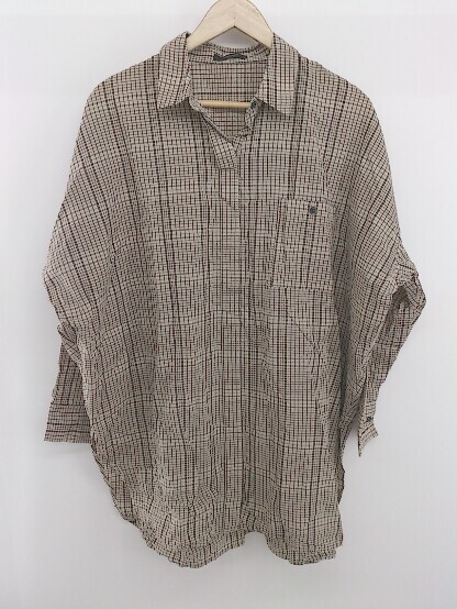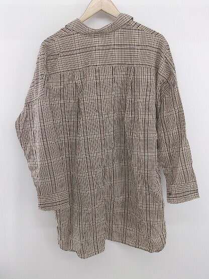 ◇ JEANASIS ジーナシス チェック ビッグシルエット 長袖 シャツ チュニック サイズF ベージュ ブラウン系 レディース E