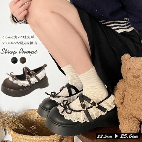 ・ガーリーな印象のストラップパンプス。