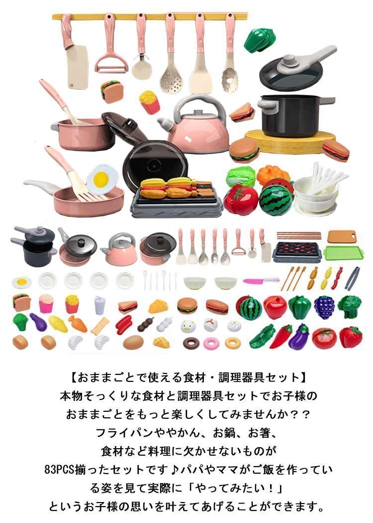 本物そっくりな食材と調理器具セットでお子様のおままごとをもっと楽しくしてみませんか フライパンややかん,お鍋,お箸,食材など料理に欠かせないものが71PCS揃ったセットですパパやママがご飯を作っている姿を見て実際に「やってみたい!」というお子様の思いを叶えてあげることができます.