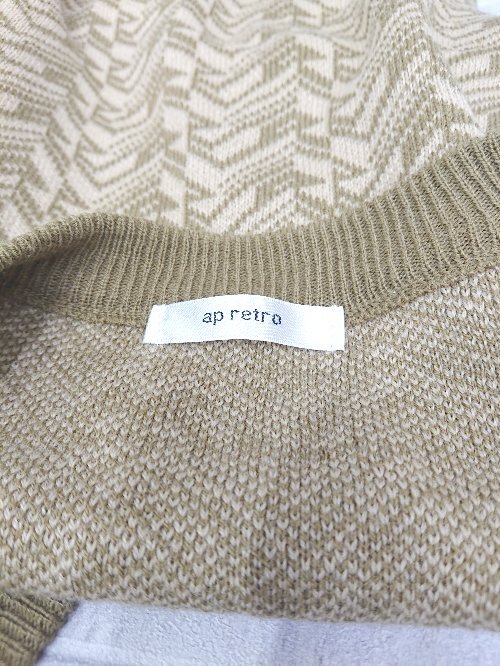 ◇ ap retro アプレトロ 総柄 ニット ベスト サイズF カーキ レディース P