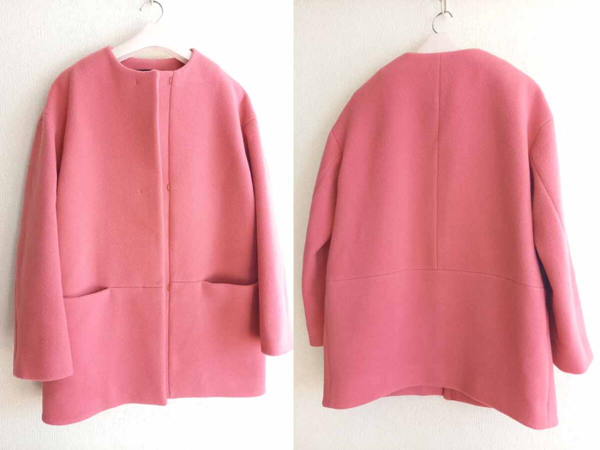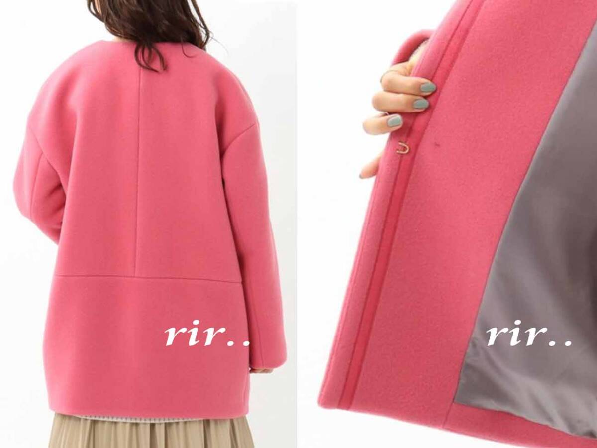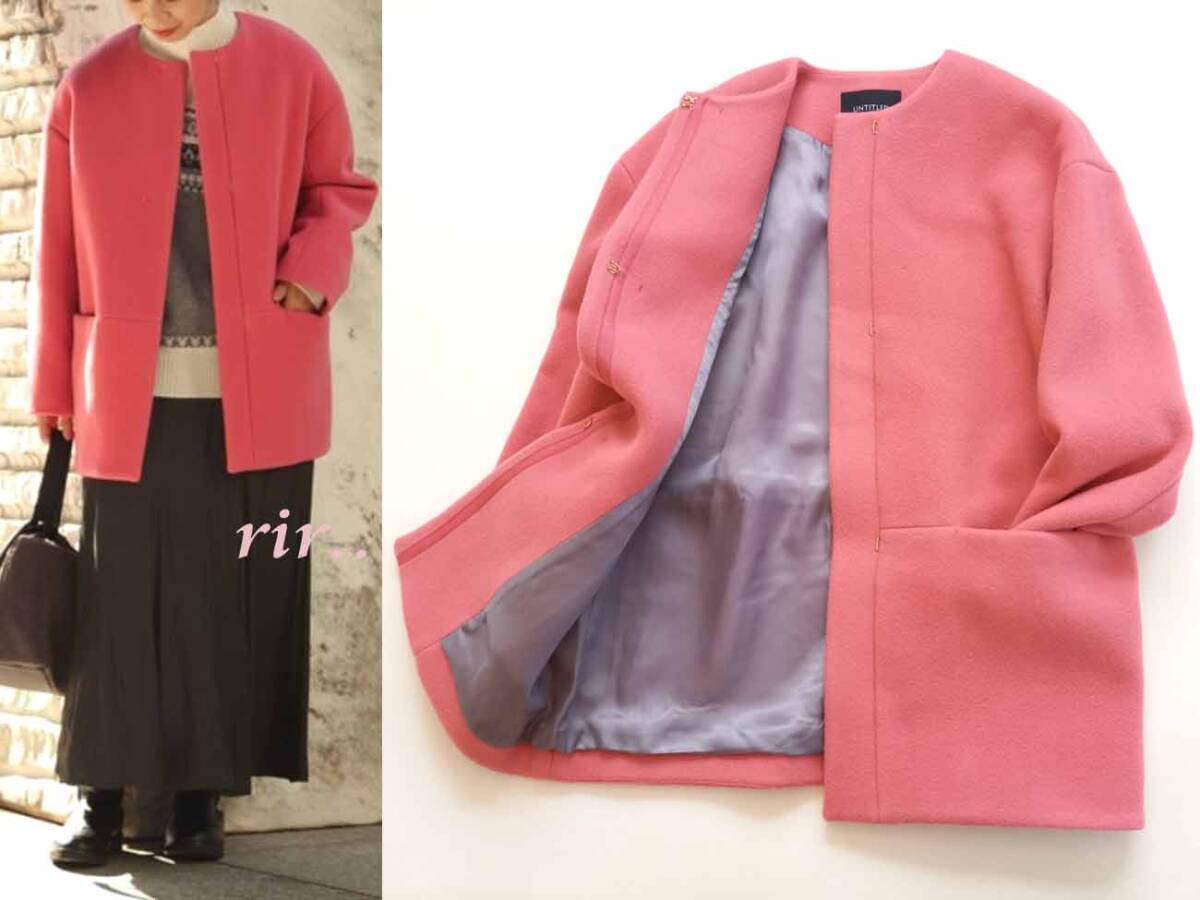 UNTITLED/アンタイトル 綺麗色ミディ丈ノーカラーコートゆったり0/ピーチピンク
