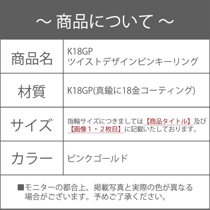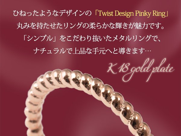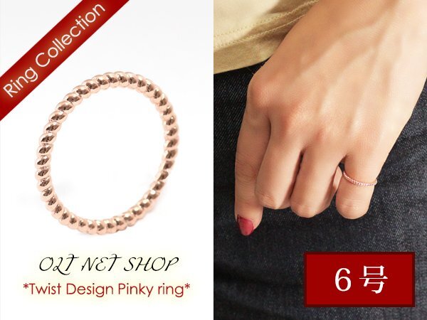 6号 / 新品 ピンキーリング K18GP 指輪 ツイスト ねじれ シンプル レディース 18金 ピンクゴールド メタル 小指 重ね付け プレゼント 女性
