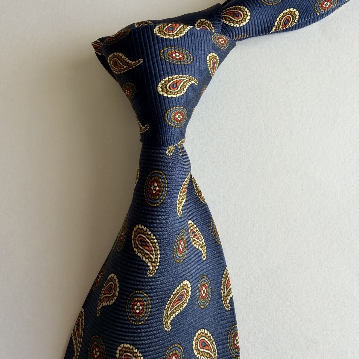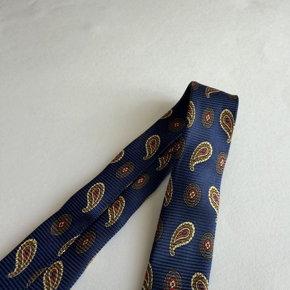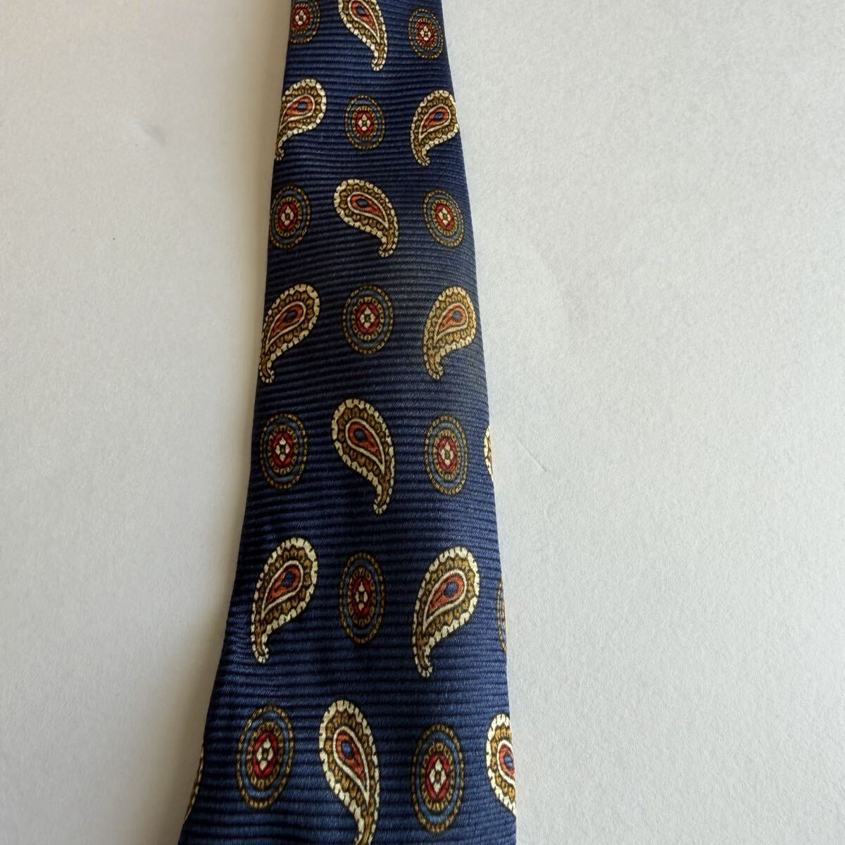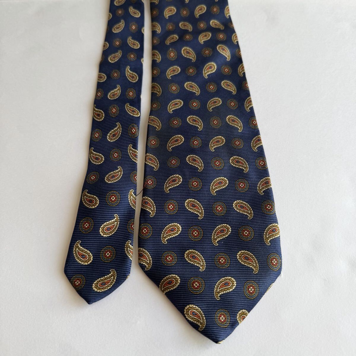 ネイビーのシルク製ペイズリー柄ネクタイ
